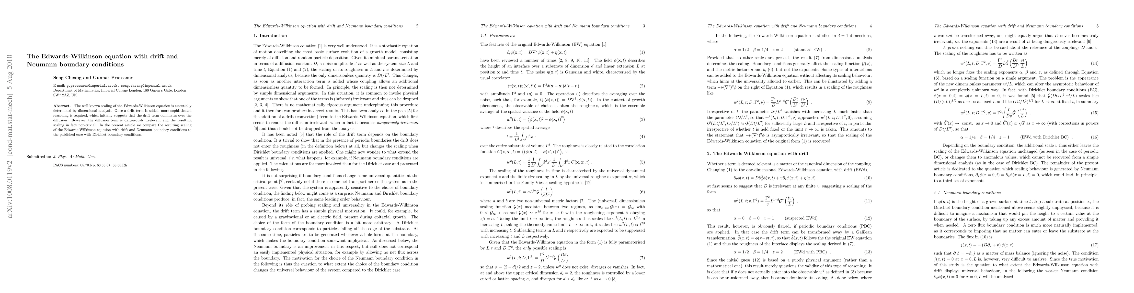 This paper investigates the scaling behavior of the Edwards-Wilkinson equation with a drift term and Neumann boundary conditions, demonstrating that despite initial assumptions, the diffusion term remains significant and the scaling is non-trivial. It compares these findings to the scaling behavior under Dirichlet boundary conditions.