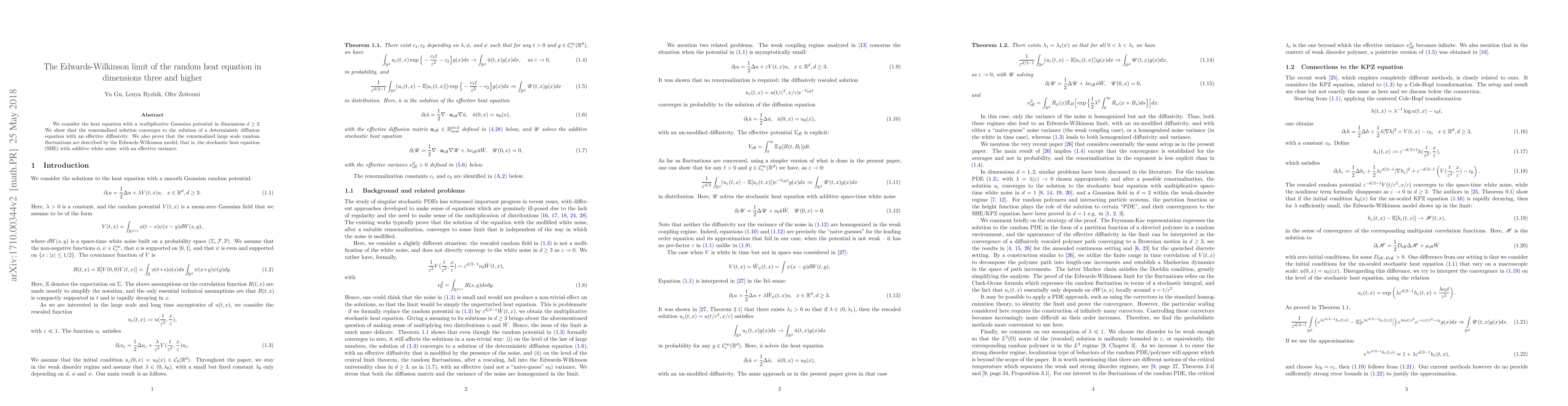 This paper demonstrates that the renormalized solution of the heat equation with a multiplicative Gaussian potential in three or higher dimensions converges to a deterministic diffusion equation with an effective diffusivity. Additionally, it shows that large scale random fluctuations follow the Edwards-Wilkinson model, specifically the stochastic heat equation with additive white noise, characterized by an effective variance.