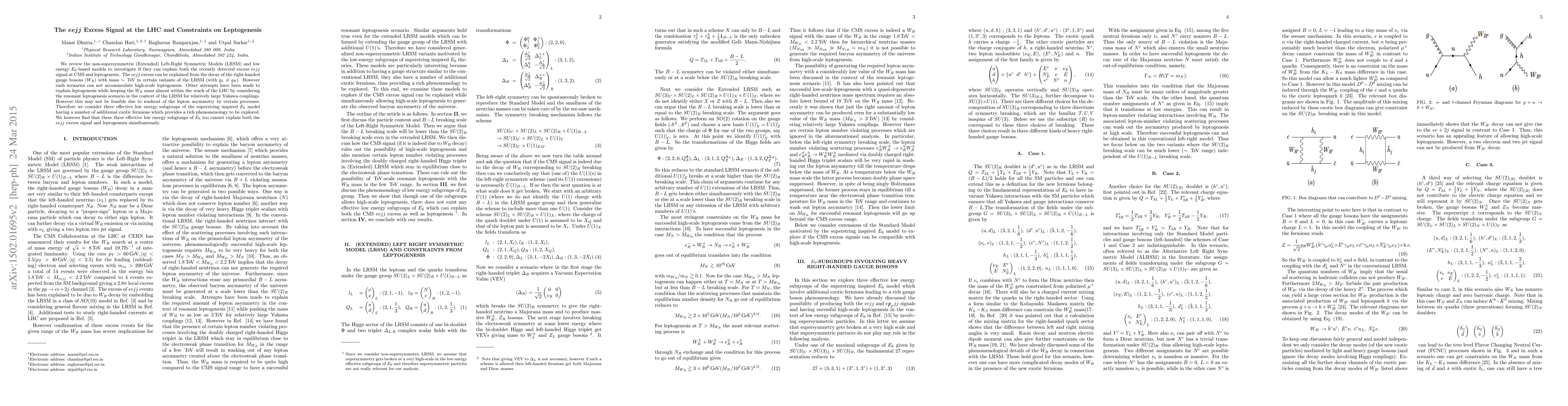 We review the non-supersymmetric (Extended) Left-Right Symmetric Models (LRSM) and low energy $E_6$-based models to investigate if they can explain both the recently detected excess $eejj$ signal at CMS and leptogenesis. The $eejj$ excess can be explained from the decay of the right-handed gauge bosons ($W_R$) with mass $\sim \rm{TeV}$ in certain variants of the LRSM (with $g_{L}\neq g_{R}$). However such scenarios can not accommodate high-scale leptogenesis. Other attempts have been made to explain leptogenesis while keeping the $W_{R}$ mass almost within the reach of the LHC by considering the resonant leptogenesis scenario in the context of the LRSM for relatively large Yukawa couplings. However this may not be feasible due to washout of the lepton asymmetry by certain processes. Therefore we consider three effective low energy subgroups of the superstring inspired $E_{6}$ model having a number of additional exotic fermions which provides a rich phenomenology to be explored. We however find that these three effective low energy subgroups of $E_6$ too cannot explain both the $eejj$ excess signal and leptogenesis simultaneously.