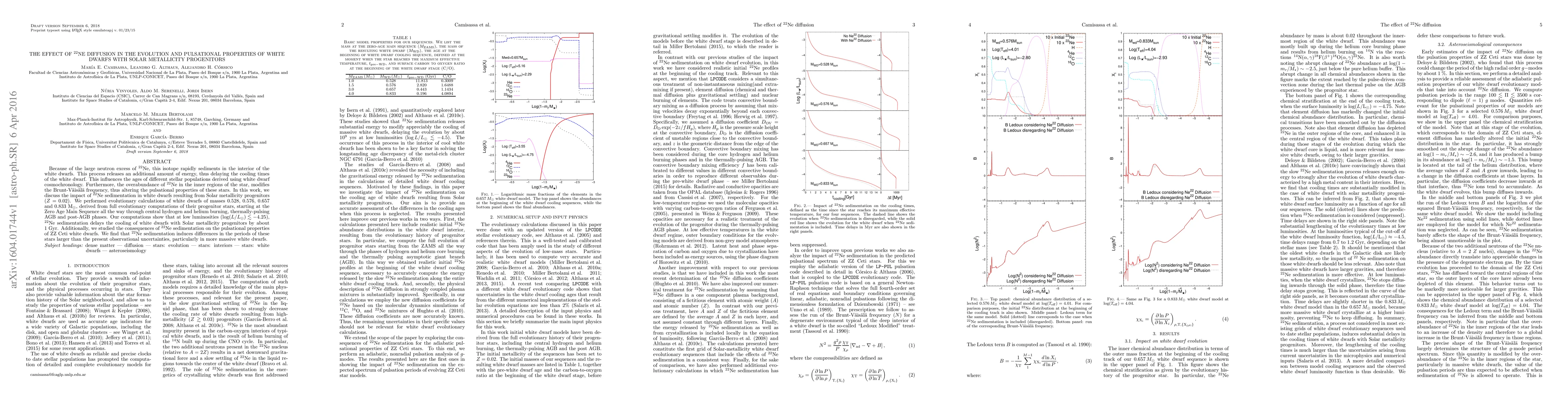 This paper investigates the impact of $^{22}$Ne sedimentation on the cooling and pulsational properties of white dwarfs with solar metallicity progenitors. It finds that $^{22}$Ne diffusion delays cooling by about 1 Gyr and significantly alters the pulsation periods of ZZ Ceti stars, especially in more massive white dwarfs.