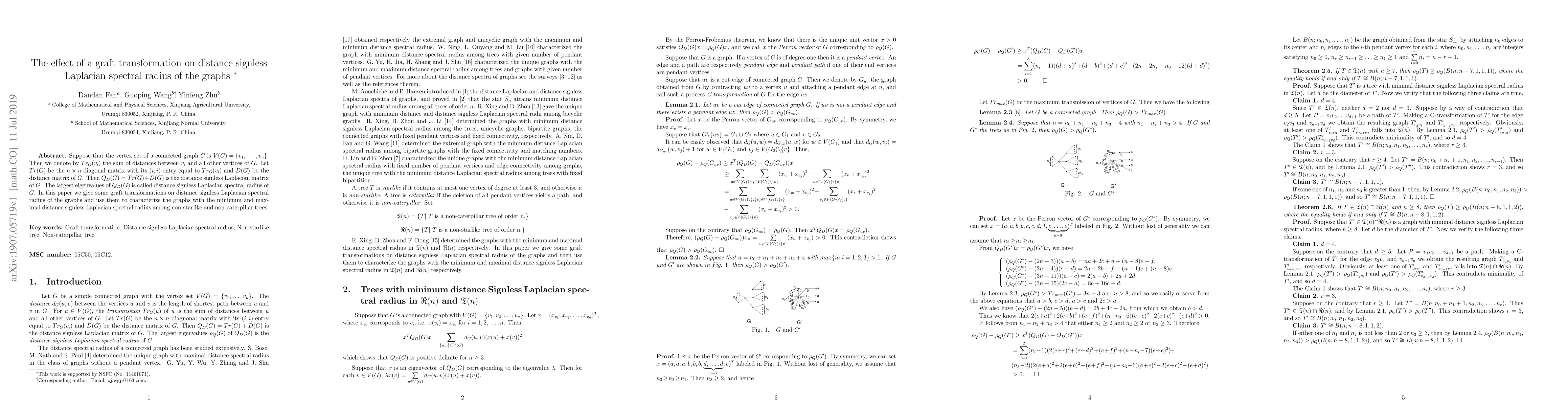 This paper investigates how graft transformations affect the distance signless Laplacian spectral radius of graphs, and uses these transformations to identify trees with minimum and maximum spectral radii among non-starlike and non-caterpillar configurations.