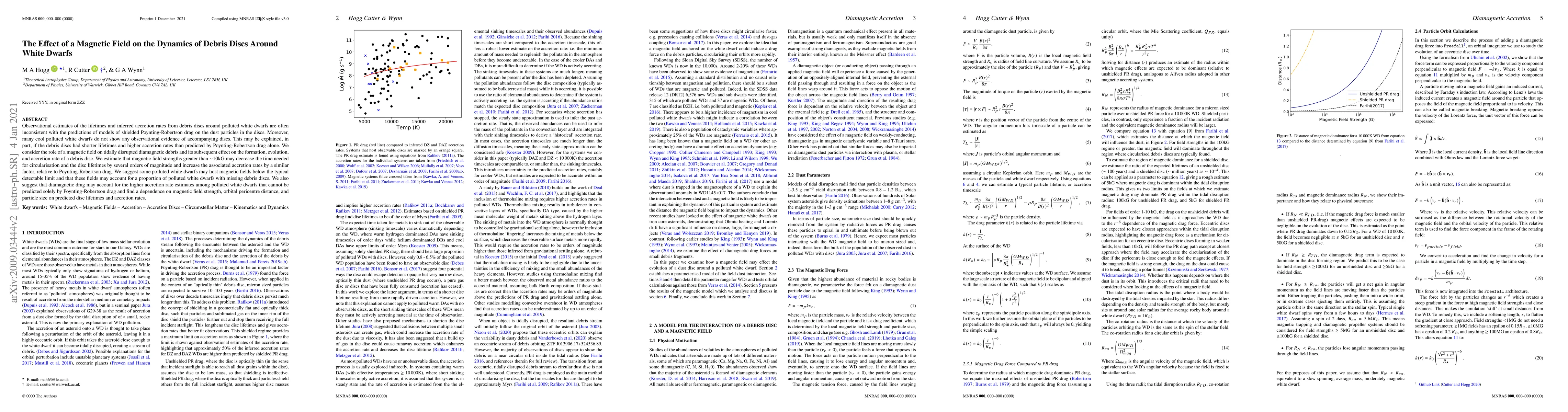 Observational estimates of the lifetimes and inferred accretion rates from debris discs around polluted white dwarfs are often inconsistent with the predictions of models of shielded Poynting-Robertson drag on the dust particles in the discs. Moreover, many cool polluted white dwarfs do not show any observational evidence of accompanying discs. This may be explained, in part, if the debris discs had shorter lifetimes and higher accretion rates than predicted by Poynting-Robertson drag alone. We consider the role of a magnetic field on tidally disrupted diamagnetic debris and its subsequent effect on the formation, evolution, and accretion rate of a debris disc. We estimate that magnetic field strengths greater than $\sim$10kG may decrease the time needed for circularisation and the disc lifetimes by several orders of magnitude and increase the associated accretion rates by a similar factor, relative to Poynting-Robertson drag. We suggest some polluted white dwarfs may host magnetic fields below the typical detectable limit and that these fields may account for a proportion of polluted white dwarfs with missing debris discs. We also suggest that diamagnetic drag may account for the higher accretion rate estimates among polluted white dwarfs that cannot be predicted solely by Poynting-Robertson drag and find a dependence on magnetic field strength, orbital pericentre distance, and particle size on predicated disc lifetimes and accretion rates.