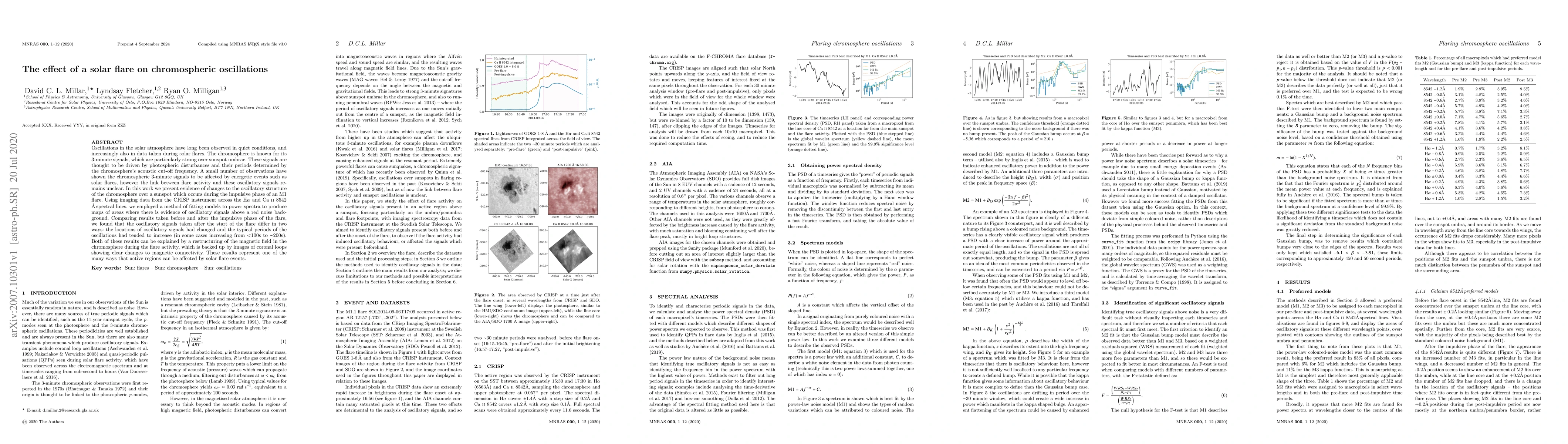 This study reveals that solar flares can alter the oscillatory signals in the chromosphere, with locations and periods of these signals changing during the flare's impulsive phase. The observed shifts are attributed to magnetic field restructuring in the chromosphere, as evidenced by changes in coronal loop connectivity.