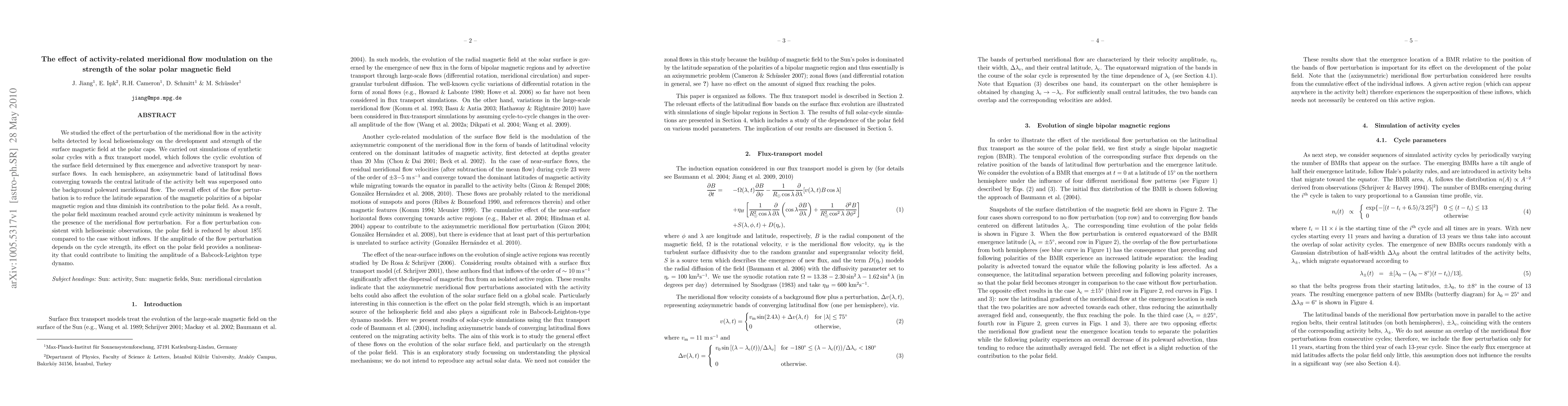 This study investigates how perturbations in meridional flow in solar activity belts influence the strength of the solar polar magnetic field. Simulations show that these perturbations reduce the polar field by about 18% during cycle minimum, suggesting a potential nonlinearity in limiting the dynamo amplitude.
