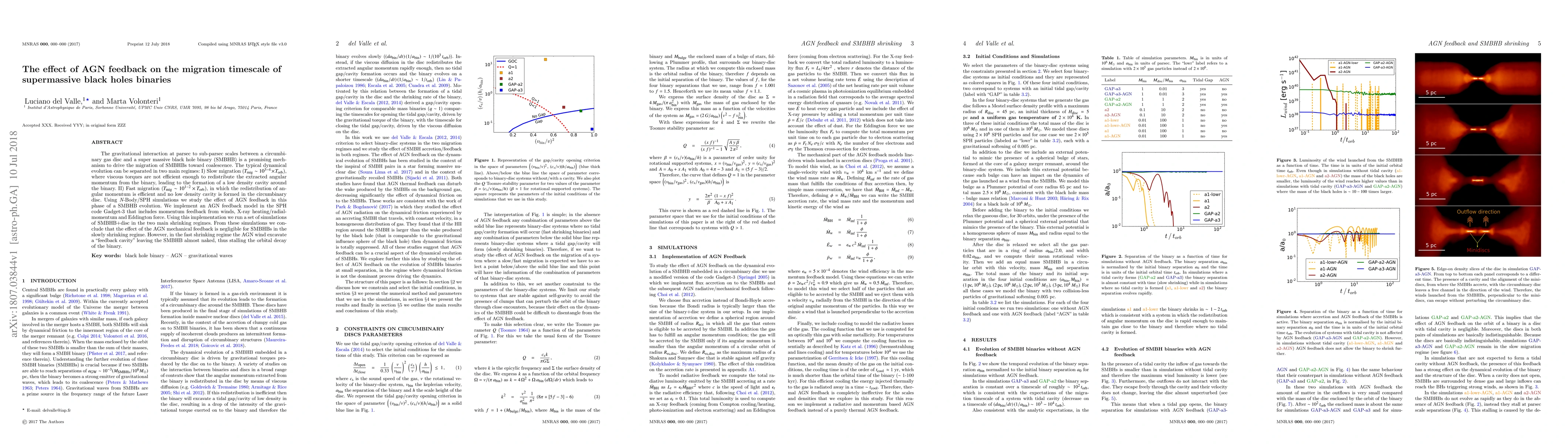 The gravitational interaction at parsec to sub-parsec scales between a circumbinary gas disc and a super massive black hole binary (SMBHB) is a promising mechanism to drive the migration of SMBHBs toward coalescence. The typical dynamical evolution can be separated in two main regimes: I) Slow migration ($T_{\rm mig}$ $\sim$ $10^{3-4}\times T_{\rm orb}$), where viscous torques are not efficient enough to redistribute the extracted angular momentum from the binary, leading to the formation of a low density cavity around the binary. II) Fast migration ($T_{\rm mig}$ $\sim$ $10^{1-2} \times T_{\rm orb}$), in which the redistribution of angular momentum is efficient and no low density cavity is formed in the circumbinary disc. Using N-Body/SPH simulations we study the effect of AGN feedback in this phase of a SMBHB evolution. We implement an AGN feedback model in the SPH code Gadget-3 that includes momentum feedback from winds, X-ray heating/radial-momentum and Eddington force. Using this implementation we run a set of simulations of SMBHB+disc in the two main shrinking regimes. From these simulations we conclude that the effect of the AGN mechanical feedback is negligible for SMBHBs in the slowly shrinking regime. However, in the fast shrinking regime the AGN wind excavate a "feedback cavity" leaving the SMBHB almost naked, thus stalling the orbital decay of the binary.