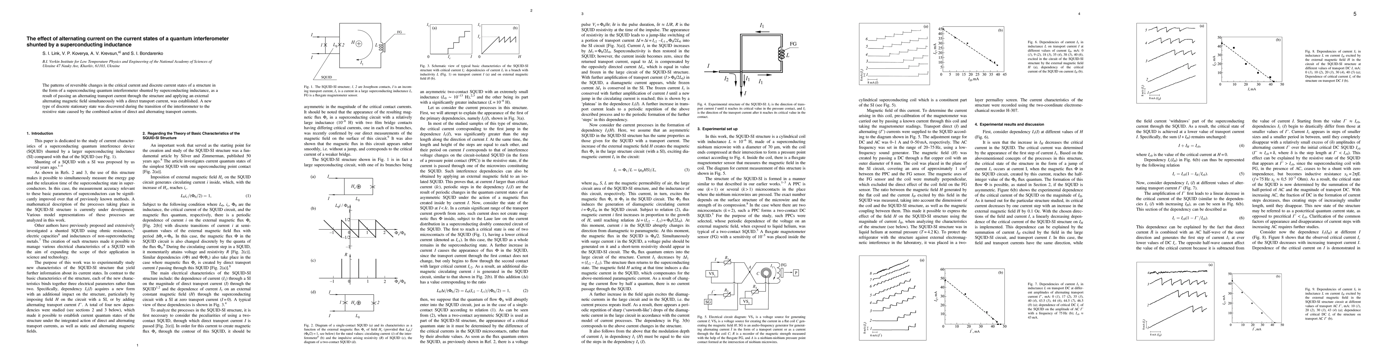 The patterns of reversible changes in the critical current and discrete current states of a structure in the form of a superconducting quantum interferometer shunted by superconducting inductance, as a result of passing an alternating transport current through the structure and applying an external alternating magnetic field simultaneously with a direct transport current, was established. A new type of discrete stationary state was discovered during the transition of the interferometer to the resistive state caused by the combined action of direct and alternating transport currents.