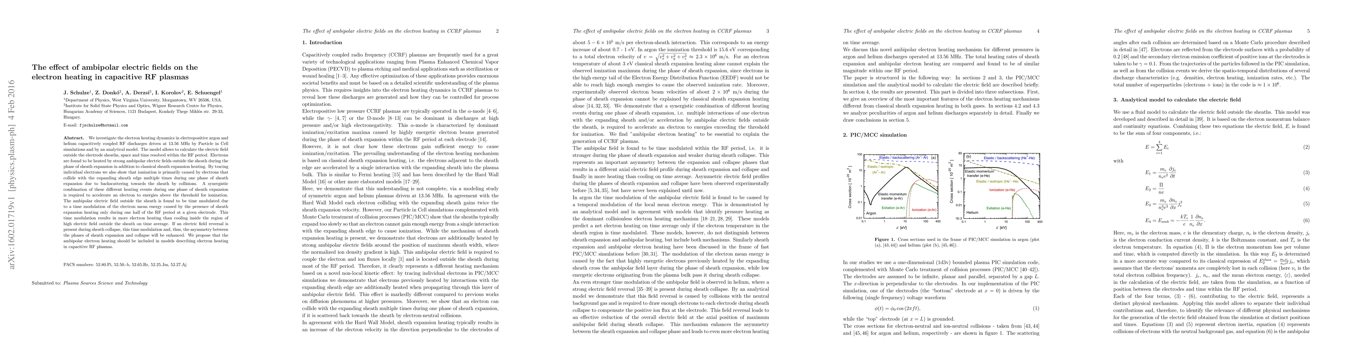 This study uses Particle in Cell simulations and an analytical model to explore electron heating in argon and helium capacitive RF discharges at 13.56 MHz. Key findings include electron heating via ambipolar electric fields outside sheaths during expansion phases and synergistic heating-cooling events causing ionization. The research highlights time modulation of ambipolar fields due to sheath expansion heating, suggesting ambipolar electron heating should be incorporated in plasma heating models.