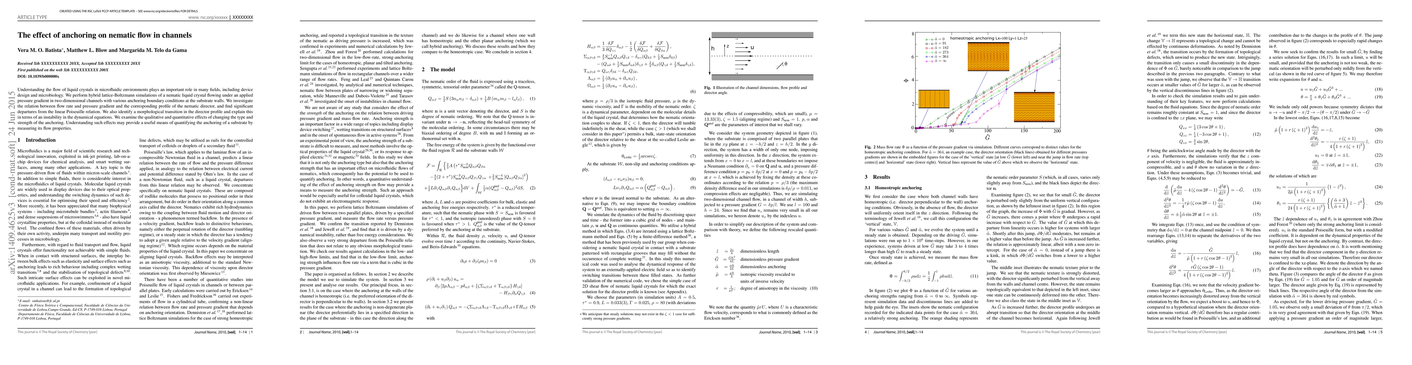Understanding the flow of liquid crystals in microfluidic environments plays an important role in many fields, including device design and microbiology. We perform hybrid lattice-Boltzmann simulations of a nematic liquid crystal flowing under an applied pressure gradient in two-dimensional channels with various anchoring boundary conditions at the substrate walls. We investigate the relation between flow rate and pressure gradient and the corresponding profile of the nematic director, and find significant departures from the linear Poiseuille relation. We also identify a morphological transition in the director profile and explain this in terms of an instability in the dynamical equations. We examine the qualitative and quantitative effects of changing the type and strength of the anchoring. Understanding such effects may provide a useful means of quantifying the anchoring of a substrate by measuring its flow properties.