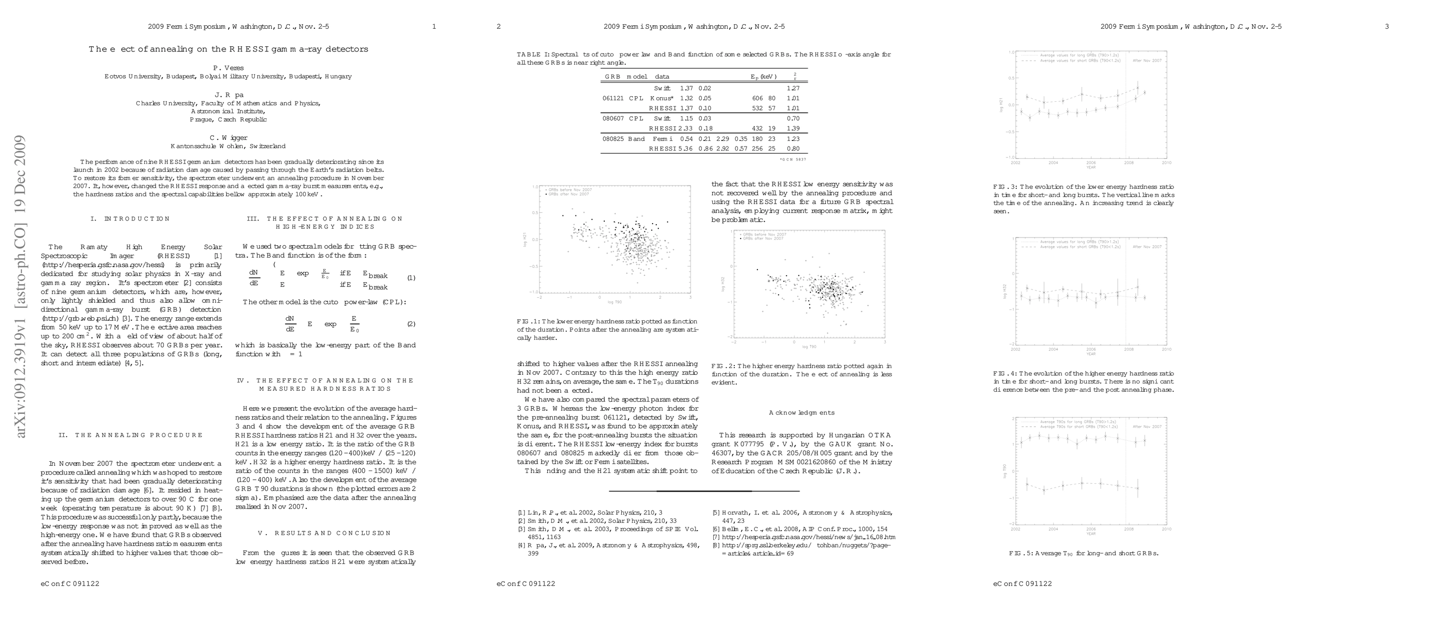 The performance of nine RHESSI germanium detectors has been gradually deteriorating since its launch in 2002 because of radiation damage caused by passing through the Earth's radiation belts. To restore its former sensitivity, the spectrometer underwent an annealing procedure in November 2007. It, however, changed the RHESSI response and affected gamma-ray burst measurements, e.g., the hardness ratios and the spectral capabilities bellow approximately 100 keV.