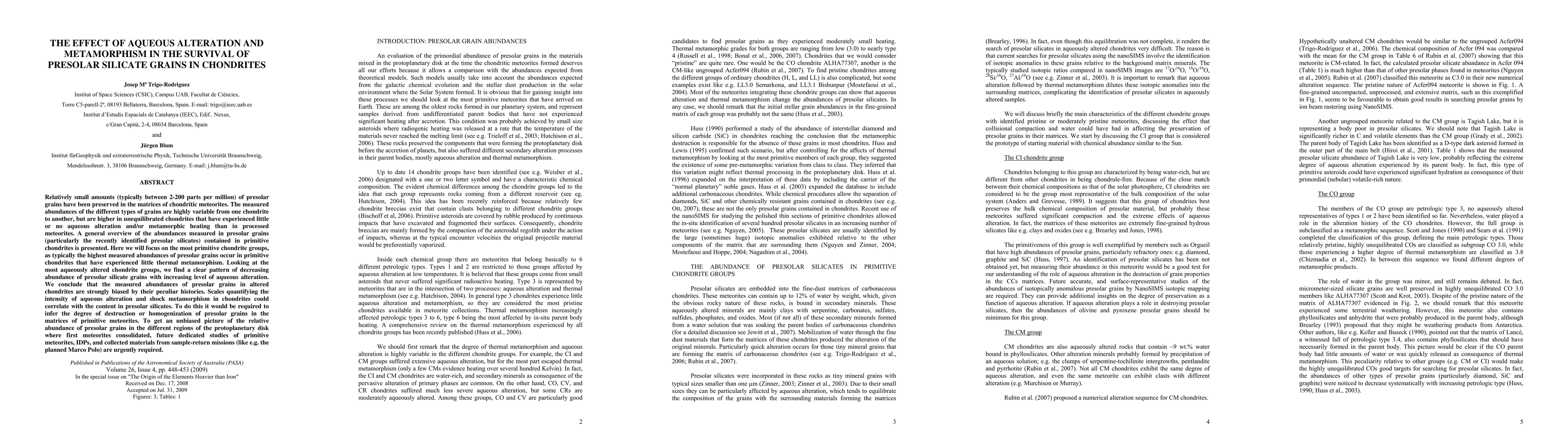 This paper examines the impact of aqueous alteration and metamorphism on the survival of presolar silicate grains in chondrites, finding that higher abundances are preserved in primitive, minimally altered chondrites. It concludes that the abundance of presolar grains is significantly affected by the meteorite's history, necessitating further studies to understand their distribution in the protoplanetary disk.