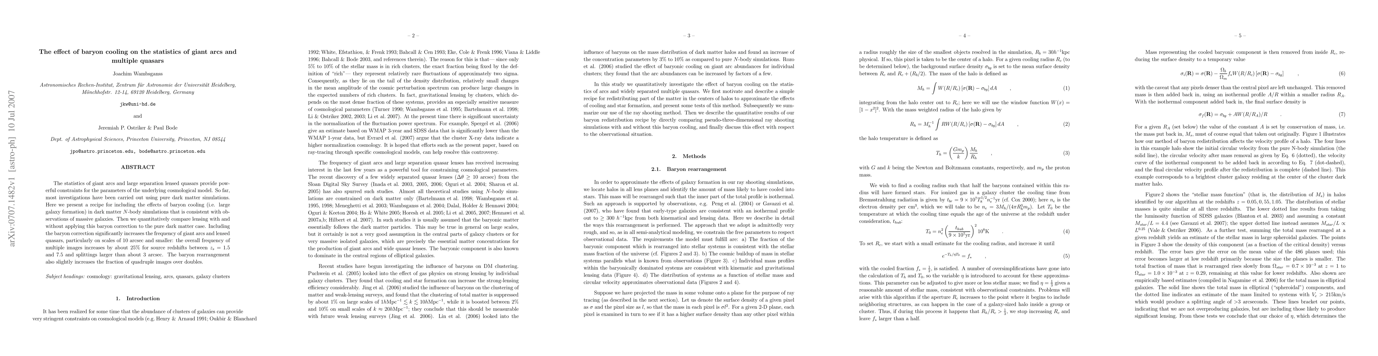 This paper investigates the impact of baryon cooling on the statistics of giant arcs and lensed quasars, comparing simulations with and without baryon effects. Including baryon cooling significantly increases the frequency of these lensing features, particularly on small angular scales, by about 25%, and slightly boosts the fraction of quadruple over double images.