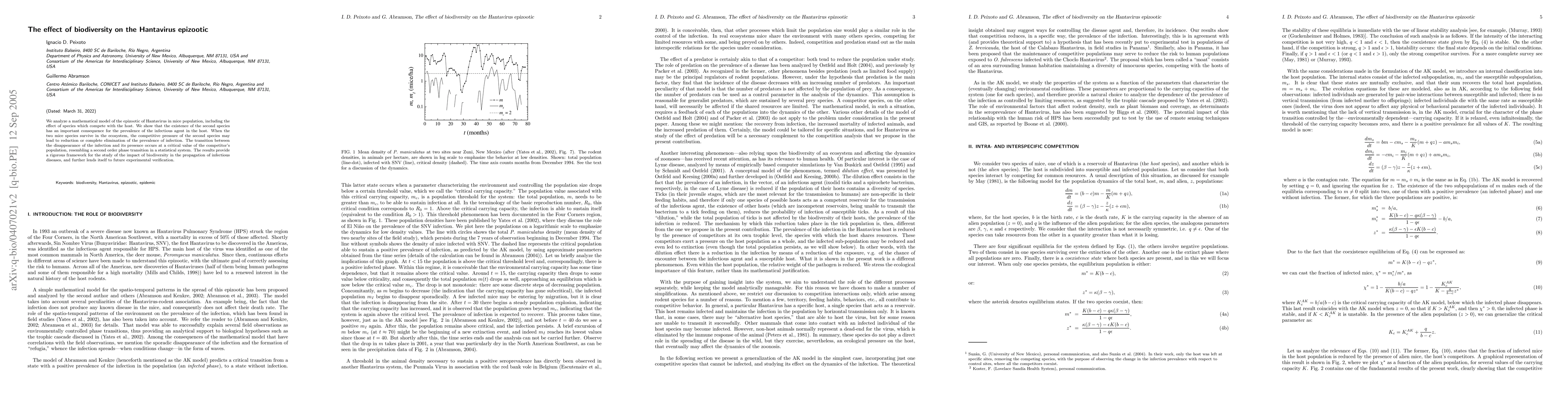 We analyze a mathematical model of the epizootic of Hantavirus in mice population, including the effect of species which compete with the host. We show that the existence of the second species has an important consequence for the prevalence of the infectious agent in the host. When the two mice species survive in the ecosystem, the competitive pressure of the second species may lead to reduction or complete elimination of the prevalence of infection. The transition between the disappearance of the infection and its presence occurs at a critical value of the competitor's population, resembling a second order phase transition in a statistical system. The results provide a rigorous framework for the study of the impact of biodiversity in the propagation of infectious diseases, and further lends itself to future experimental verification.