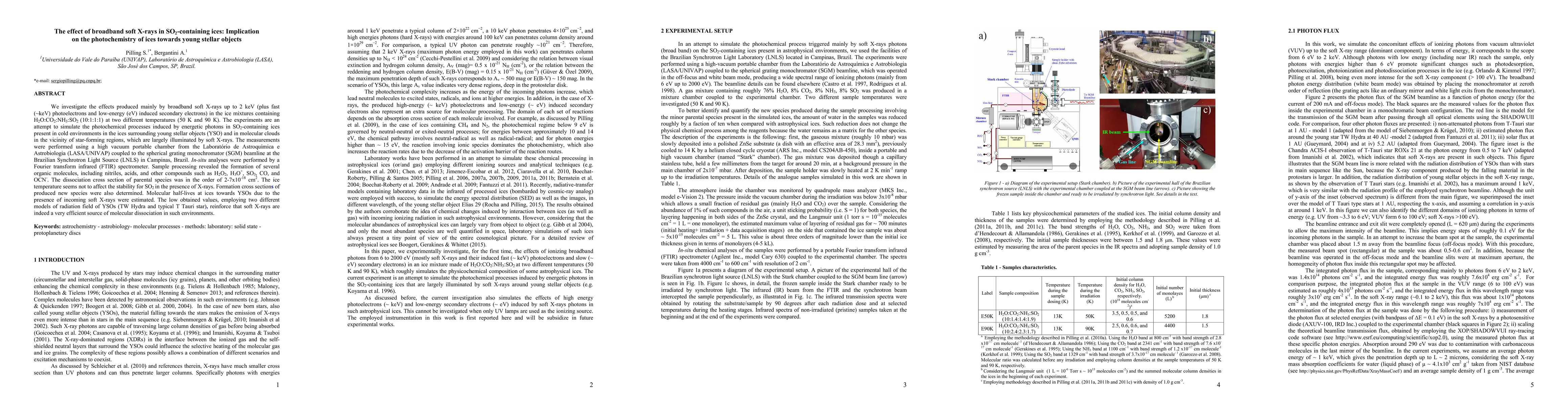 We investigate the effects produced mainly by broadband soft X-rays up to 2 keV (plus fast (keV) photoelectrons and low-energy (eV) induced secondary electrons) in the ice mixtures containing H2O:CO2:NH3:SO2 (10:1:1:1) at two different temperatures (50 K and 90 K). The experiments are an attempt to simulate the photochemical processes induced by energetic photons in SO2-containing ices present in cold environments in the ices surrounding young stellar objects (YSO) and in molecular clouds in the vicinity of star-forming regions, which are largely illuminated by soft X-rays. The measurements were performed using a high vacuum portable chamber from the Laboratorio de Astroquimica e Astrobiologia (LASA/UNIVAP) coupled to the spherical grating monochromator (SGM) beamline at the Brazilian Synchrotron Light Source (LNLS) in Campinas, Brazil. In-situ analyses were performed by a Fourier transform infrared (FTIR) spectrometer. Sample processing revealed the formation of several organic molecules, including nitriles, acids, and other compounds such as H2O2, H3O+, SO3, CO, and OCN-. The dissociation cross section of parental species was in the order of 2-7E-18 cm2. The ice temperature seems not to affect the stability for SO2 in the presence of X-rays. Formation cross sections of produced new species were also determined. Molecular half-lives at ices towards YSOs due to the presence of incoming soft X-rays were estimated. The low obtained values, employing two different models of radiation field of YSOs (TW Hydra and typical T Tauri star), reinforce that soft X-rays are indeed a very efficient source of molecular dissociation in such environments.