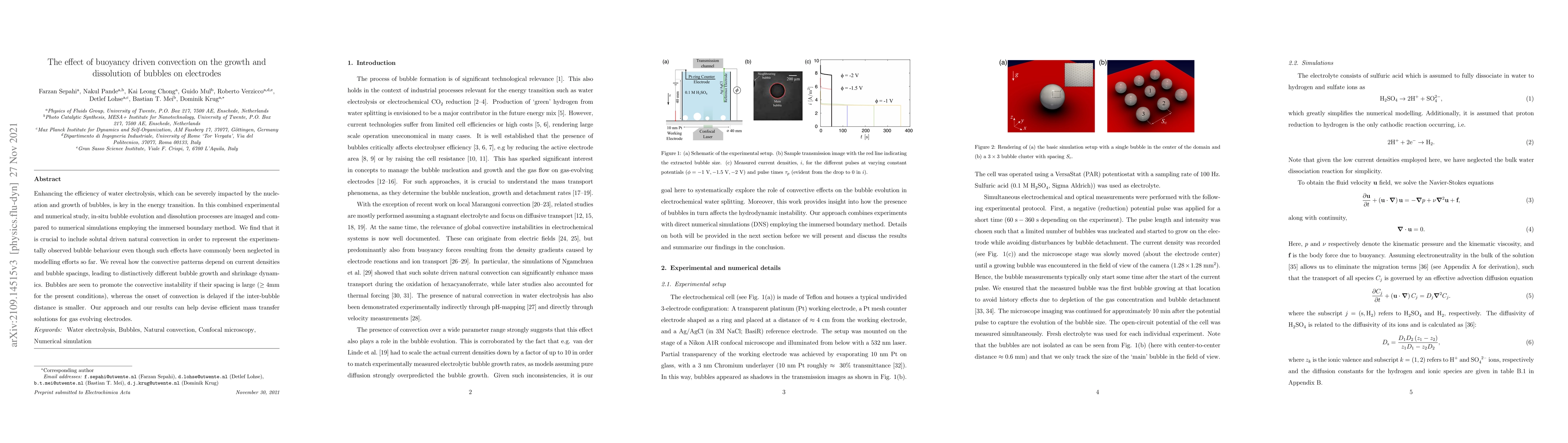 Enhancing the efficiency of water electrolysis, which can be severely impacted by the nucleation and growth of bubbles, is key in the energy transition. In this combined experimental and numerical study, in-situ bubble evolution and dissolution processes are imaged and compared to numerical simulations employing the immersed boundary method. We find that it is crucial to include solutal driven natural convection in order to represent the experimentally observed bubble behaviour even though such effects have commonly been neglected in modelling efforts so far. We reveal how the convective patterns depend on current densities and bubble spacings, leading to distinctively different bubble growth and shrinkage dynamics. Bubbles are seen to promote the convective instability if their spacing is large ($\geq4$mm for the present conditions), whereas the onset of convection is delayed if the inter-bubble distance is smaller. Our approach and our results can help devise efficient mass transfer solutions for gas evolving electrodes.