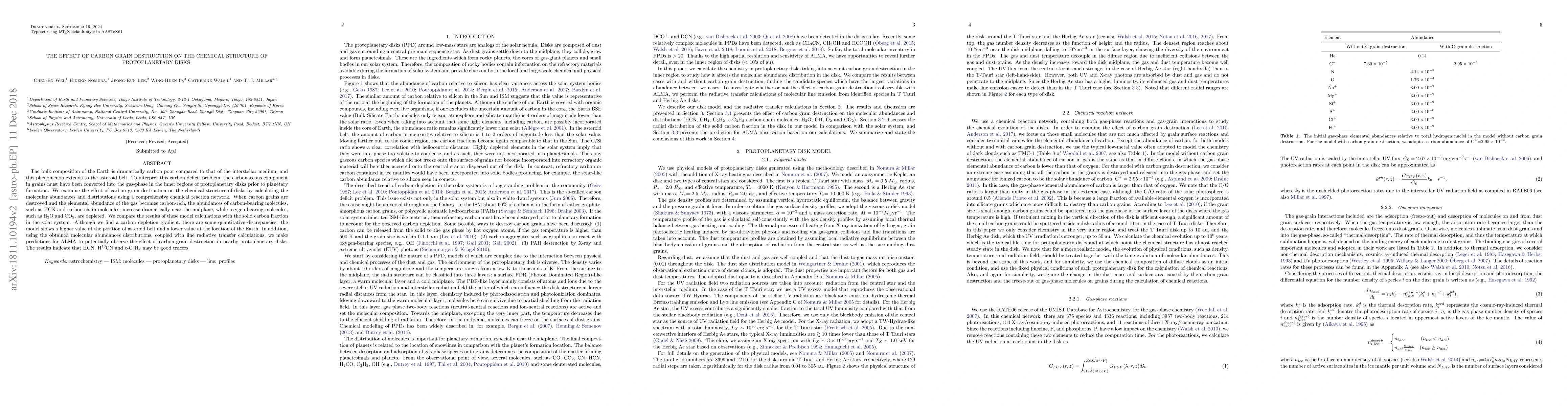 Development and application of a chemical reaction network to model the effect of carbon grain destruction on molecular abundances and distributions in protoplanetary disks.