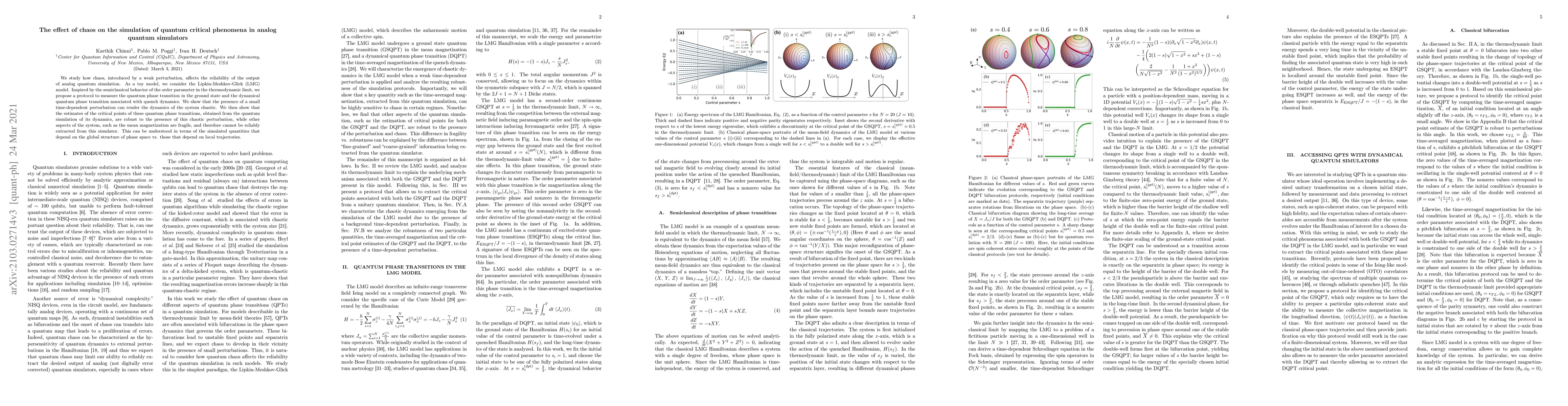This paper investigates how chaos introduced by a weak perturbation affects analog quantum simulations of quantum critical phenomena using the Lipkin-Meshkov-Glick model. It finds that while estimates of critical points remain robust, other system properties like mean magnetization become unreliable due to chaotic dynamics.