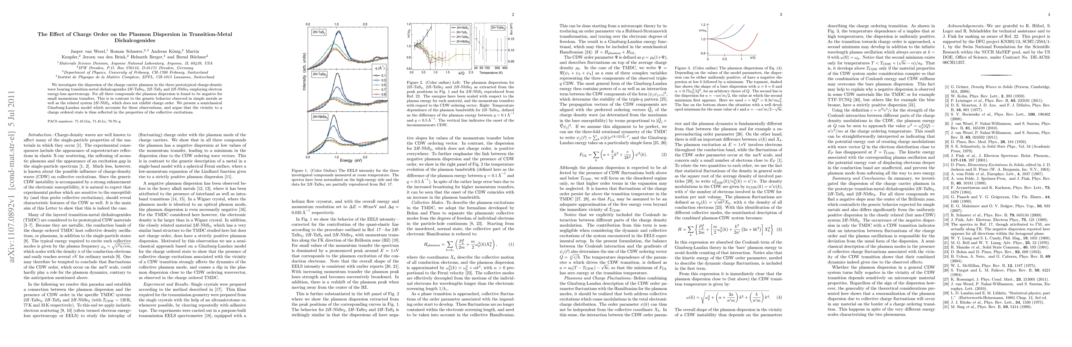 We investigate the dispersion of the charge carrier plasmon in the three prototypical charge-density wave bearing transition-metal dichalcogenides 2H-TaSe2, 2H-TaS2 and 2H-NbSe2 employing electron energy-loss spectroscopy. For all three compounds the plasmon dispersion is found to be negative for small momentum transfers. This is in contrast to the generic behavior observed in simple metals as well as the related system 2H-NbS2, which does not exhibit charge order. We present a semiclassical Ginzburg-Landau model which accounts for these observations, and argue that the vicinity to a charge ordered state is thus reflected in the properties of the collective excitations.