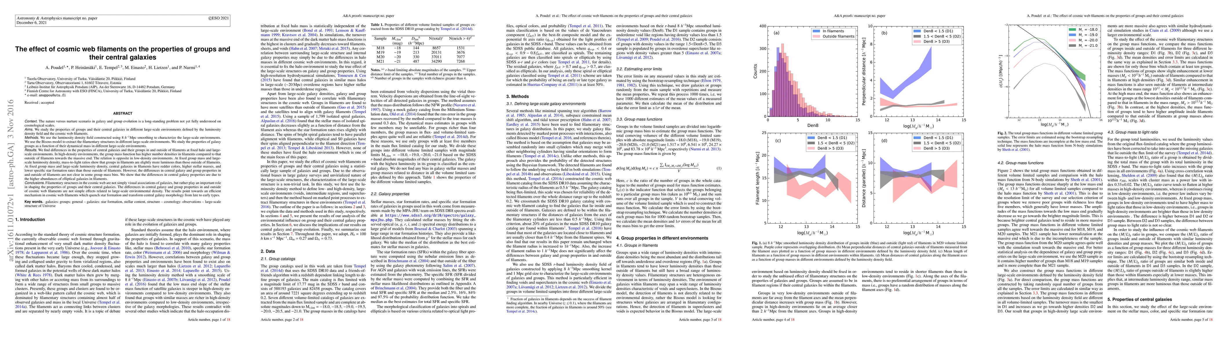 This study investigates the influence of cosmic web filaments on the properties of galaxy groups and their central galaxies, revealing that groups within filaments exhibit higher luminosity, redder central galaxies with greater stellar masses, and lower specific star formation rates compared to those outside filaments. The findings suggest a quenching mechanism in filaments that transforms central galaxy morphology, indicating filaments play a crucial role beyond mere visual associations.