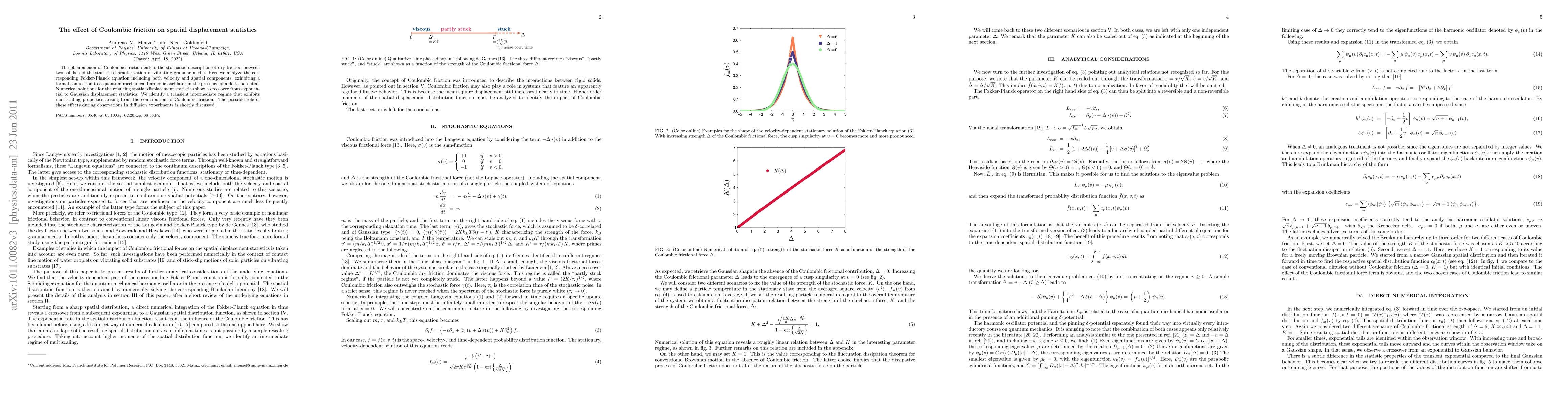 The phenomenon of Coulombic friction enters the stochastic description of dry friction between two solids and the statistic characterization of vibrating granular media. Here we analyze the corresponding Fokker-Planck equation including both velocity and spatial components, exhibiting a formal connection to a quantum mechanical harmonic oscillator in the presence of a delta potential. Numerical solutions for the resulting spatial displacement statistics show a crossover from exponential to Gaussian displacement statistics. We identify a transient intermediate regime that exhibits multiscaling properties arising from the contribution of Coulombic friction. The possible role of these effects during observations in diffusion experiments is shortly discussed.