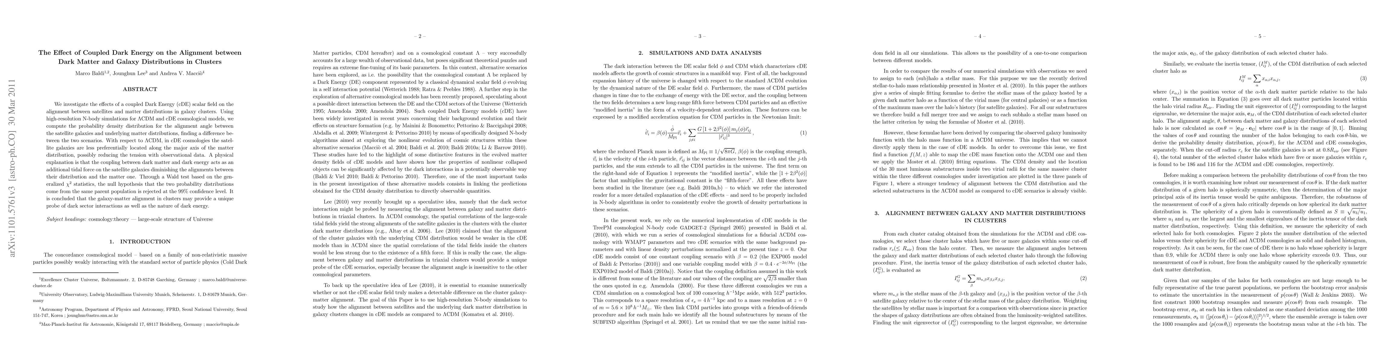 This study uses high-resolution simulations to show that coupled dark energy alters the alignment between satellite galaxies and dark matter in galaxy clusters, reducing preferential alignment in cDE models compared to LCDM. The findings suggest that galaxy-matter alignment could reveal insights into dark sector interactions and the nature of dark energy.