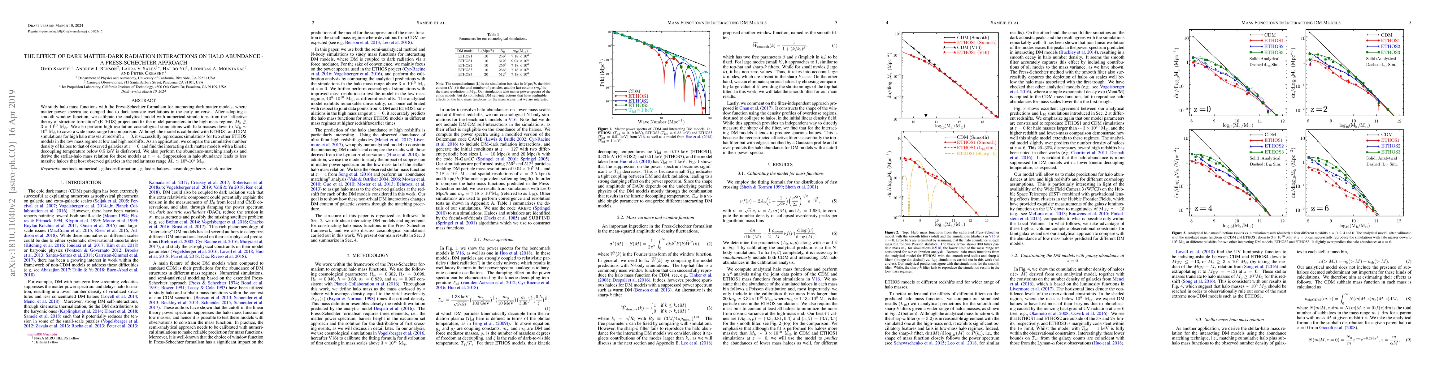We study halo mass functions with the Press-Schechter formalism for interacting dark matter models, where matter power spectra are damped due to dark acoustic oscillations in the early universe. After adopting a smooth window function, we calibrate the analytical model with numerical simulations from the "effective theory of structure formation" (ETHOS) project and fix the model parameters in the high mass regime, $M_{\rm h}\gtrsim3\times10^{10}\;{\rm M}_{\odot}$. We also perform high-resolution cosmological simulations with halo masses down to $M_{\rm h}\sim10^8\;{\rm M}_{\odot}$ to cover a wide mass range for comparison. Although the model is calibrated with ETHOS1 and CDM simulations for high halo masses at redshift $z=0$, it successfully reproduces simulations for two other ETHOS models in the low mass regime at low and high redshifts. As an application, we compare the cumulative number density of haloes to that of observed galaxies at $z=6$, and find the interacting dark matter models with a kinetic decoupling temperature below $0.5\ \rm{keV}$ is disfavored. We also perform the abundance-matching analysis and derive the stellar-halo mass relation for these models at $z=4$. Suppression in halo abundance leads to less massive haloes that host observed galaxies in the stellar mass range $M_*\simeq 10^5-10^7\ {\rm M}_{\odot}$.