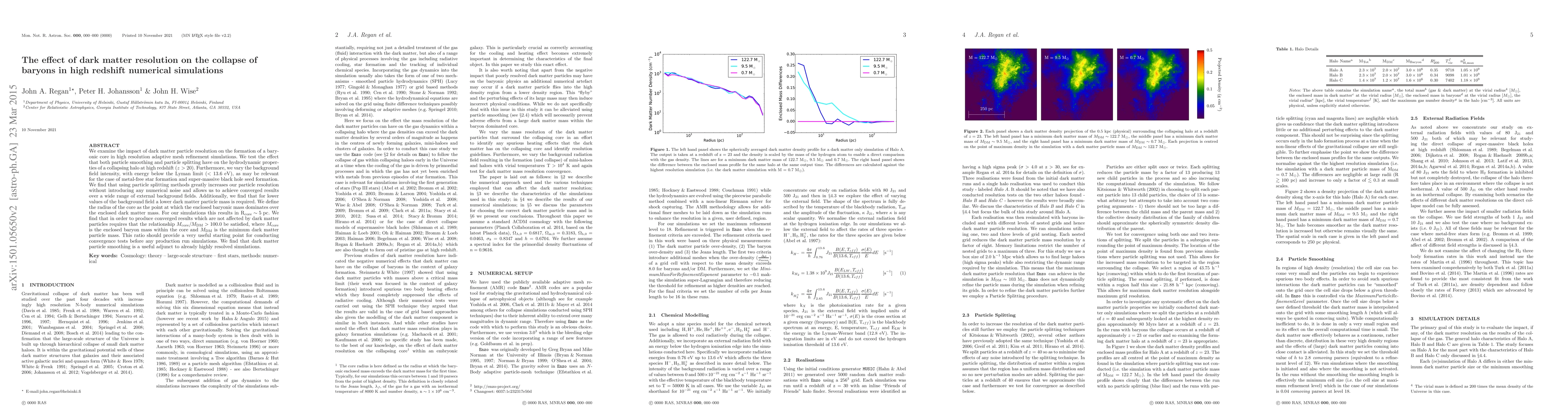 We examine the impact of dark matter particle resolution on the formation of a baryonic core in high resolution adaptive mesh refinement simulations. We test the effect that both particle smoothing and particle splitting have on the hydrodynamic properties of a collapsing halo at high redshift (z > 20). Furthermore, we vary the background field intensity, with energy below the Lyman limit (< 13.6 eV), as may be relevant for the case of metal-free star formation and super-massive black hole seed formation. We find that using particle splitting methods greatly increases our particle resolution without introducing any numerical noise and allows us to achieve converged results over a wide range of external background fields. Additionally, we find that for lower values of the background field a lower dark matter particle mass is required. We define the radius of the core as the point at which the enclosed baryonic mass dominates over the enclosed dark matter mass. For our simulations this results in $\rm{R_{core} \sim 5\ pc}$. We find that in order to produce converged results which are not affected by dark matter particles requires that the relationship ${M_{\rm{core}} / M_{\rm{DM}}} > 100.0$ be satisfied, where ${M_{\rm{core}}}$ is the enclosed baryon mass within the core and $M_{\rm{DM}}$ is the minimum dark matter particle mass. This ratio should provide a very useful starting point for conducting convergence tests before any production run simulations. We find that dark matter particle smoothing is a useful adjunct to already highly resolved simulations.