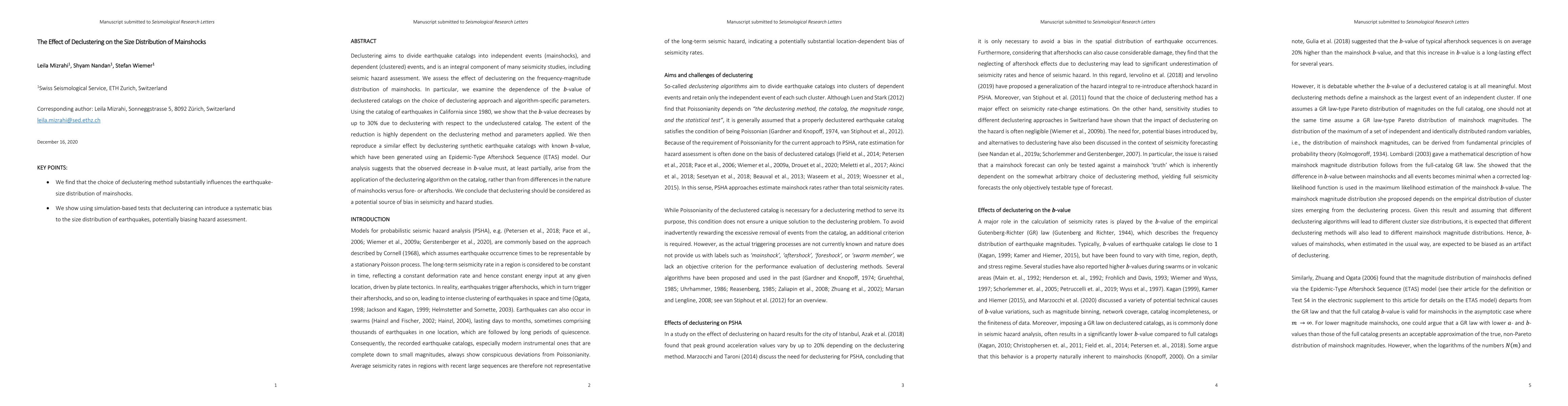 Declustering aims to divide earthquake catalogs into independent events (mainshocks), and dependent (clustered) events, and is an integral component of many seismicity studies, including seismic hazard assessment. We assess the effect of declustering on the frequency-magnitude distribution of mainshocks. In particular, we examine the dependence of the b-value of declustered catalogs on the choice of declustering approach and algorithm-specific parameters. Using the catalog of earthquakes in California since 1980, we show that the b-value decreases by up to 30% due to declustering with respect to the undeclustered catalog. The extent of the reduction is highly dependent on the declustering method and parameters applied. We then reproduce a similar effect by declustering synthetic earthquake catalogs with known b-value, which have been generated using an Epidemic-Type Aftershock Sequence (ETAS) model. Our analysis suggests that the observed decrease in b-value must, at least partially, arise from the application of the declustering algorithm on the catalog, rather than from differences in the nature of mainshocks versus fore- or aftershocks. We conclude that declustering should be considered as a potential source of bias in seismicity and hazard studies.