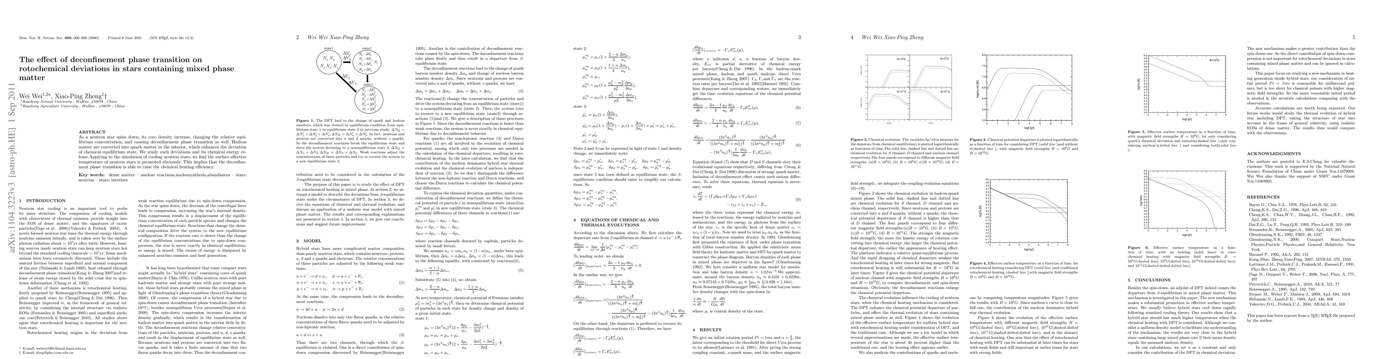 Summary: The paper investigates how the deconfinement phase transition in neutron stars, where hadron matter converts to quark matter, enhances rotochemical deviations and chemical energy release, leading to an increase in the surface effective temperature and improved chemical heating efficiency.