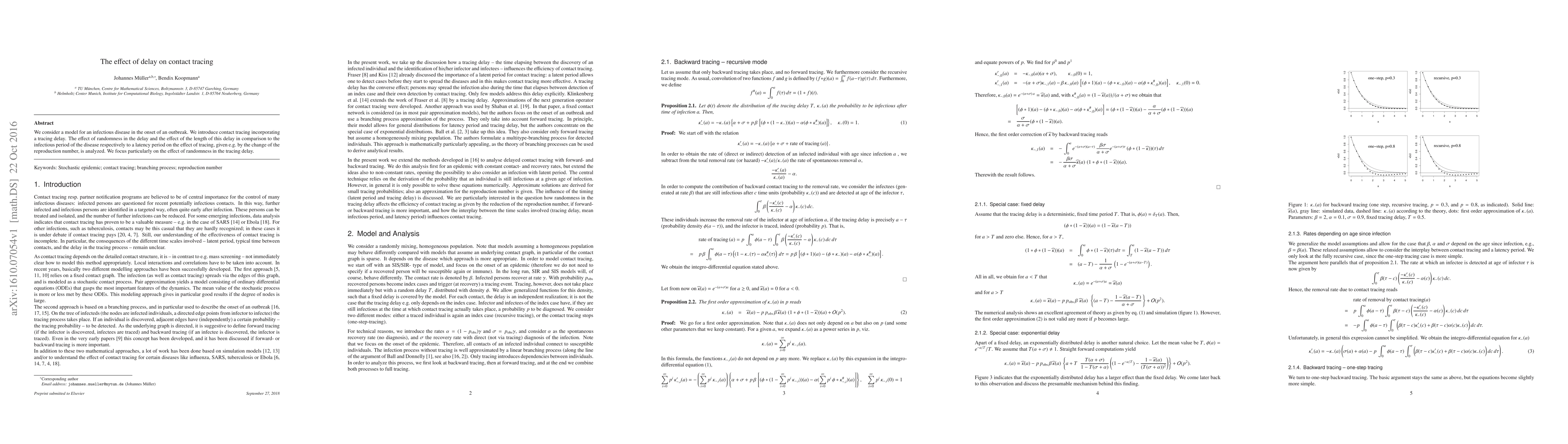 We consider a model for an infectious disease in the onset of an outbreak. We introduce contact tracing incorporating a tracing delay. The effect of randomness in the delay and the effect of the length of this delay in comparison to the infectious period of the disease respectively to a latency period on the effect of tracing, given e.g. by the change of the reproduction number, is analyzed. We focus particularly on the effect of randomness in the tracing delay.