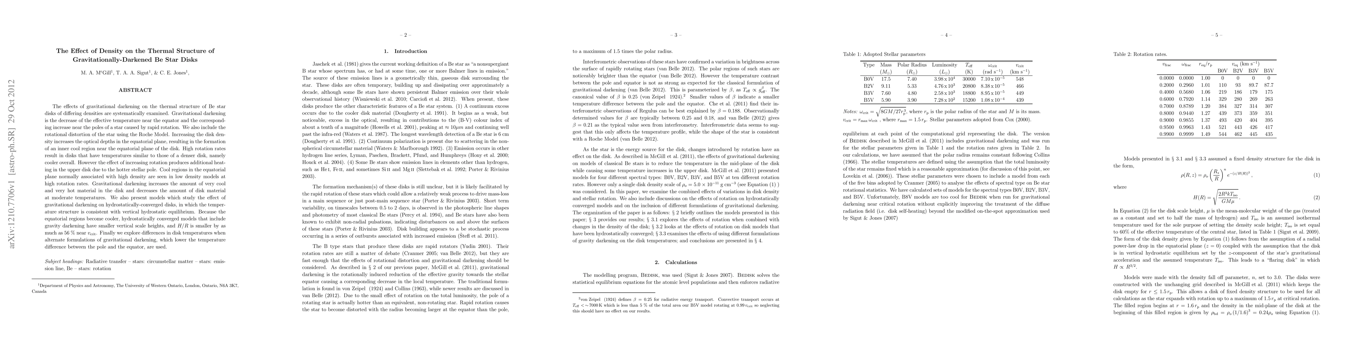This paper investigates how gravitational darkening affects the thermal structure of Be star disks with varying densities, finding that higher disk densities create cooler equatorial regions and hotter poles due to rapid rotation. It also examines hydrostatically-converged disks, showing that gravitational darkening reduces vertical scale heights by up to 56% near critical rotation speeds.