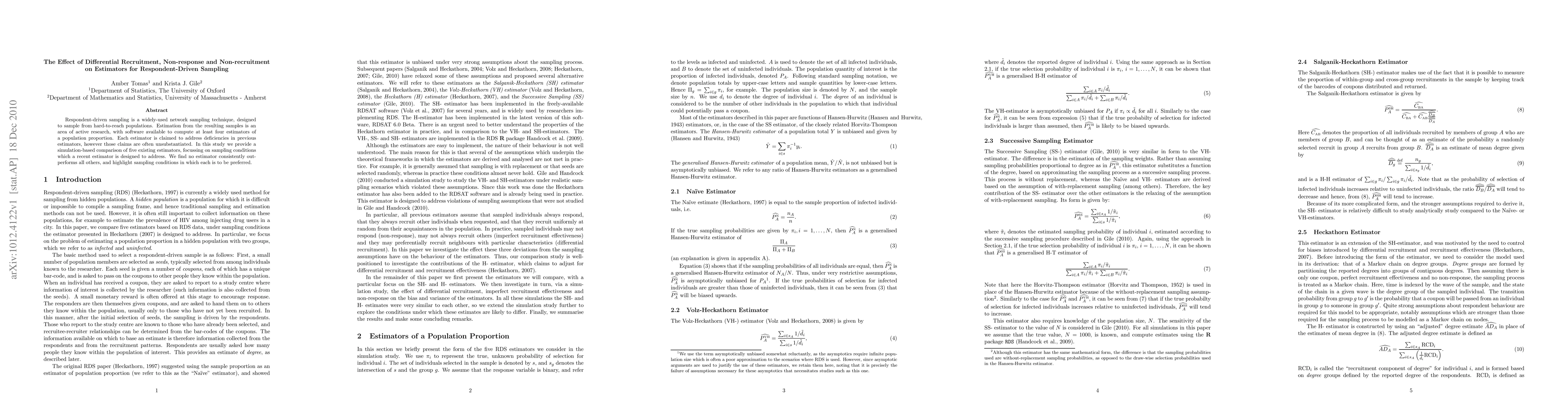This study compares five estimators for respondent-driven sampling, finding no single estimator consistently outperforms the others. It emphasizes the importance of sampling conditions in determining the most suitable estimator for estimating population proportions.