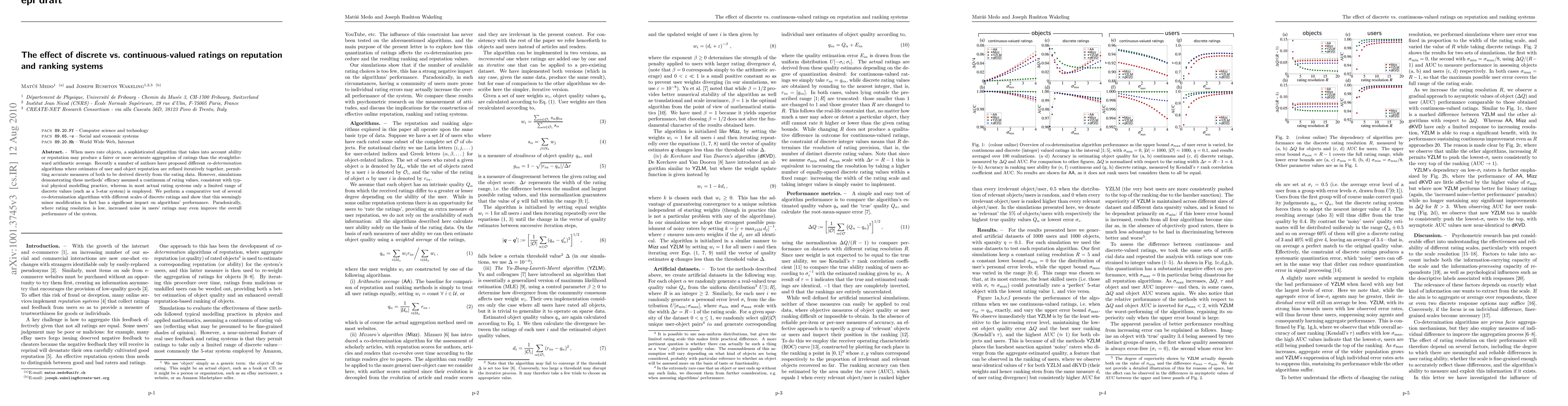 When users rate objects, a sophisticated algorithm that takes into account ability or reputation may produce a fairer or more accurate aggregation of ratings than the straightforward arithmetic average. Recently a number of authors have proposed different co-determination algorithms where estimates of user and object reputation are refined iteratively together, permitting accurate measures of both to be derived directly from the rating data. However, simulations demonstrating these methods' efficacy assumed a continuum of rating values, consistent with typical physical modelling practice, whereas in most actual rating systems only a limited range of discrete values (such as a 5-star system) is employed. We perform a comparative test of several co-determination algorithms with different scales of discrete ratings and show that this seemingly minor modification in fact has a significant impact on algorithms' performance. Paradoxically, where rating resolution is low, increased noise in users' ratings may even improve the overall performance of the system.