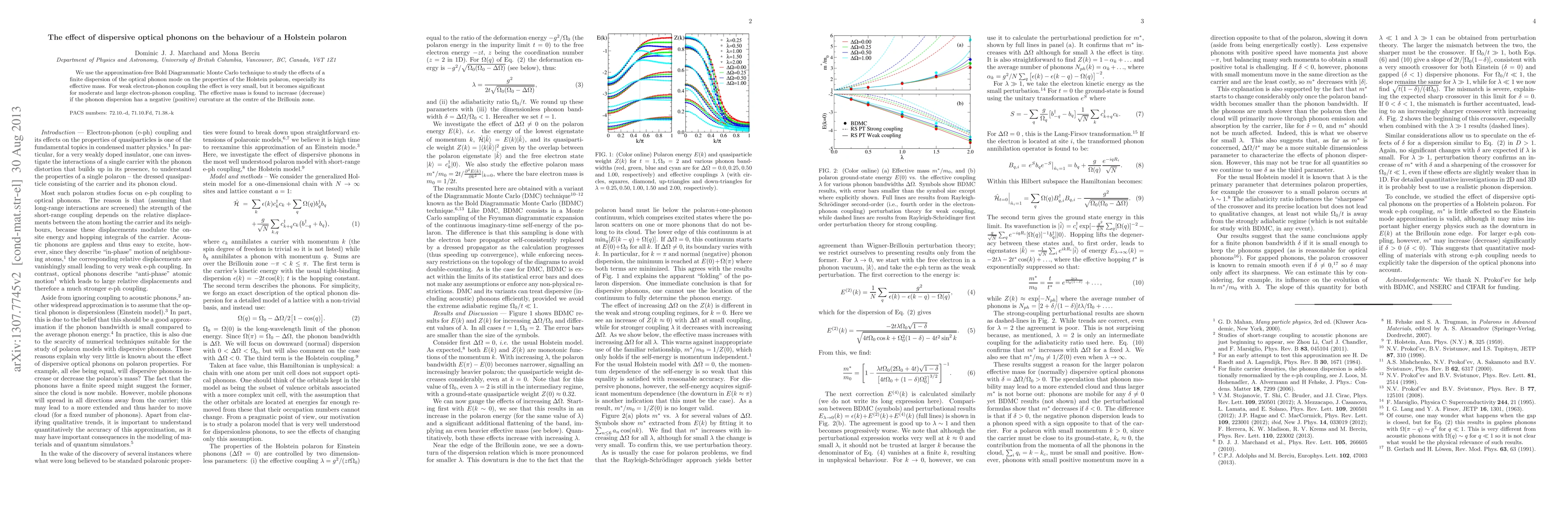 Summary: This study uses the Bold Diagrammatic Monte Carlo technique to investigate how optical phonon dispersion affects the Holstein polaron's properties, revealing that while weak coupling has minimal impact, moderate to large coupling significantly alters the effective mass, which increases with negative phonon dispersion curvature and decreases with positive curvature.