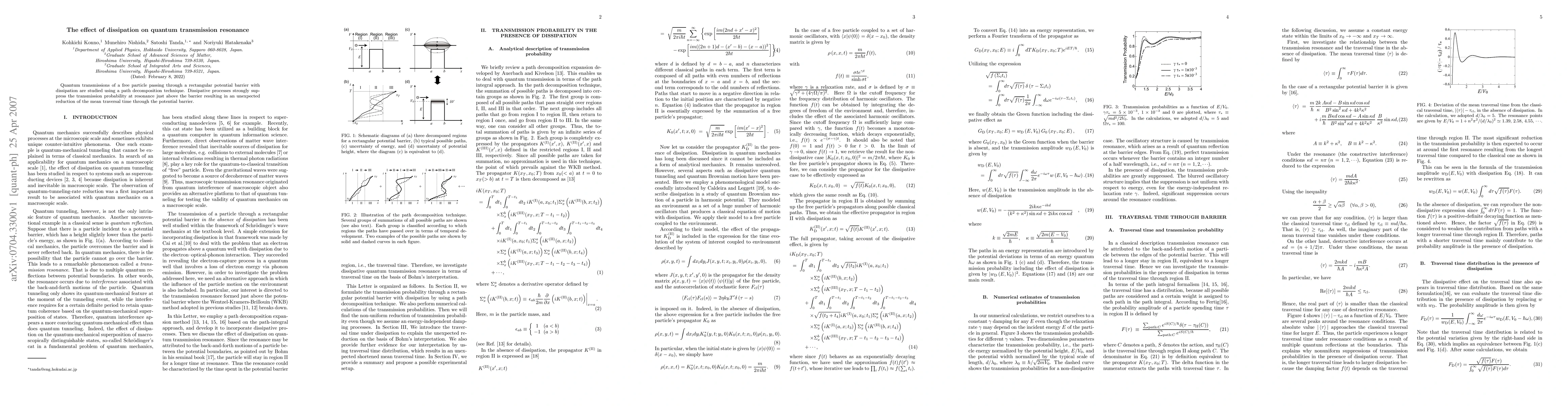 Summary: This study investigates how quantum transmission through a potential barrier is affected by dissipation, revealing that dissipative processes significantly reduce transmission probability at resonance, paradoxically decreasing the mean traversal time.