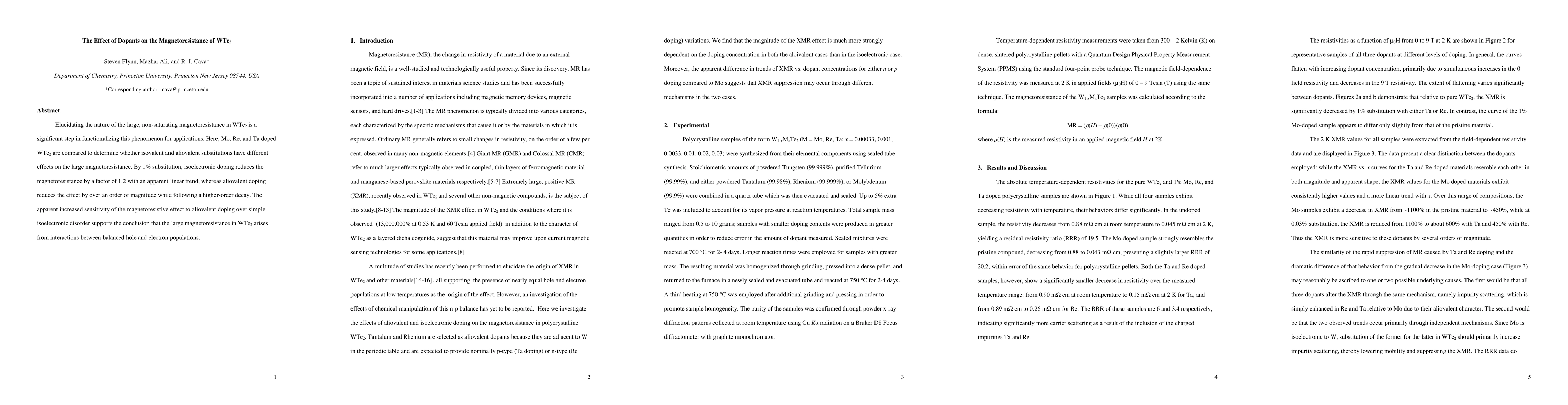 Elucidating the nature of the large, non-saturating magnetoresistance in WTe2 is a significant step in functionalizing this phenomenon for applications. Here, Mo, Re, and Ta doped WTe2 are compared to determine whether isovalent and aliovalent substitutions have different effects on the large magnetoresistance. By 1% substitution, isoelectronic doping reduces the magnetoresistance by a factor of 1.2 with an apparent linear trend, whereas aliovalent doping reduces the effect by over an order of magnitude while following a higher-order decay. The apparent increased sensitivity of the magnetoresistive effect to aliovalent doping over simple isoelectronic disorder supports the conclusion that the large magnetoresistance in WTe2 arises from interactions between balanced hole and electron populations.