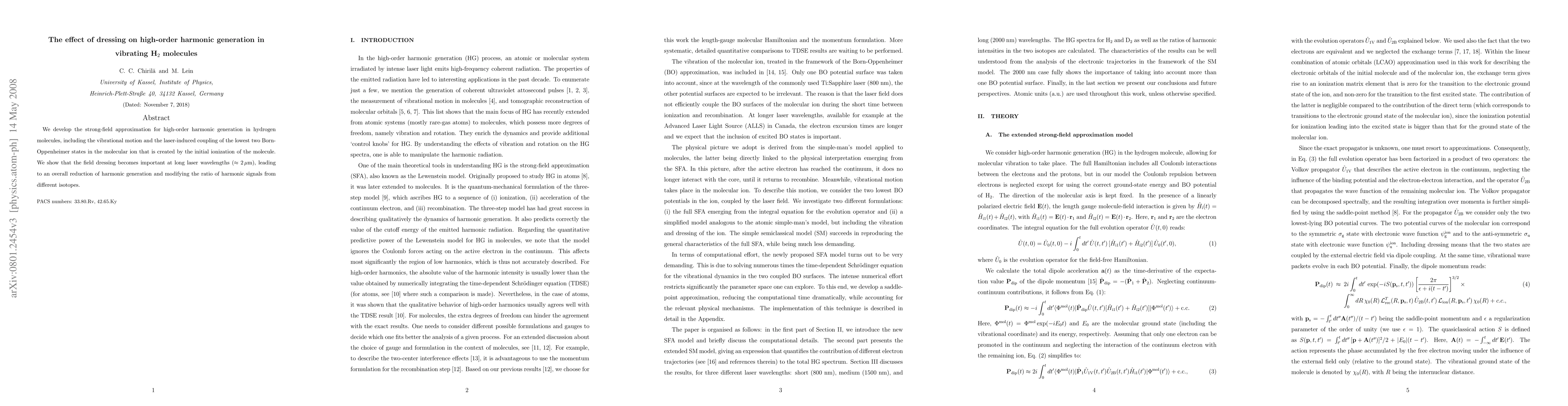 We develop the strong-field approximation for high-order harmonic generation in hydrogen molecules, including the vibrational motion and the laser-induced coupling of the lowest two Born-Oppenheimer states in the molecular ion that is created by the initial ionization of the molecule. We show that the field dressing becomes important at long laser wavelengths ($\approx 2 \mu$m), leading to an overall reduction of harmonic generation and modifying the ratio of harmonic signals from different isotopes.