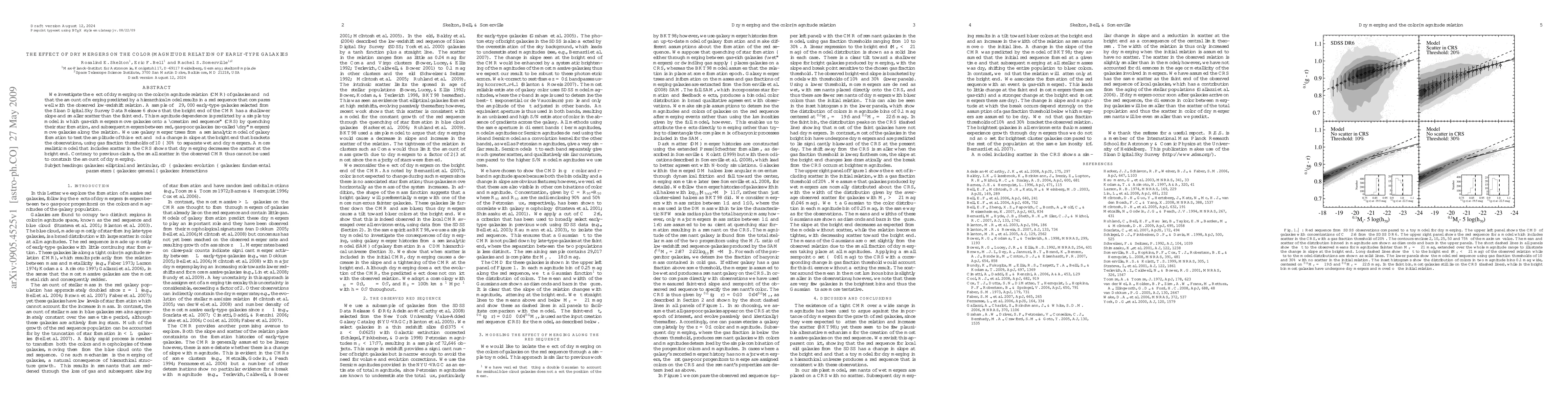 The research examines dry mergers' impact on early-type galaxies' color-magnitude relation (CMR). Utilizing a semianalytic model, it demonstrates that dry mergers can account for the observed CMR's shallower bright end and smaller scatter, contradicting earlier claims that CMR scatter could constrain dry merging rates.