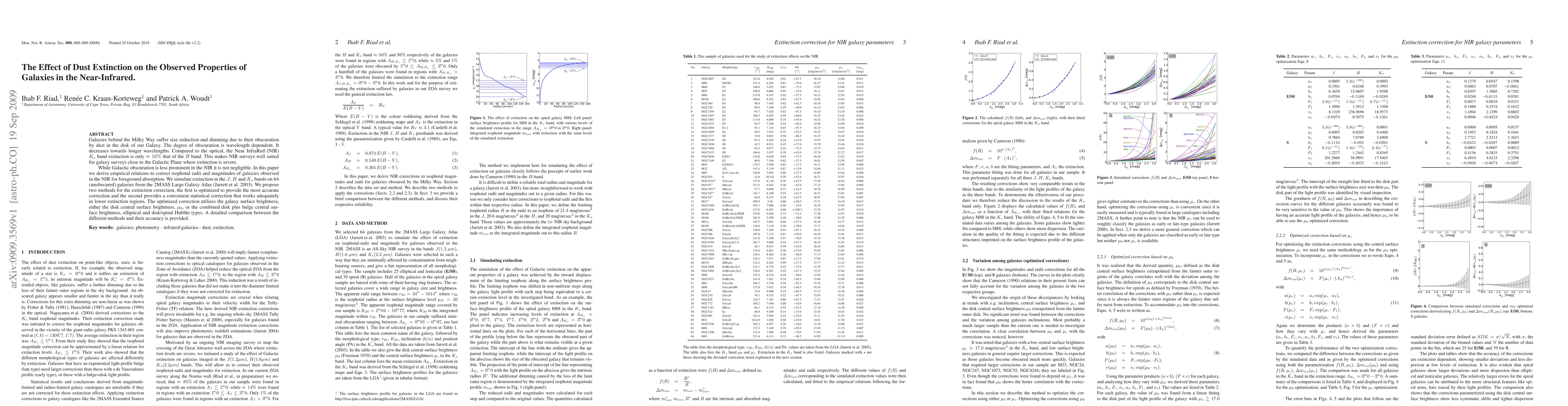 Galaxies behind the Milky Way suffer size reduction and dimming due to their obscuration by dust in the disk of our Galaxy. The degree of obscuration is wavelength dependent. It decreases towards longer wavelengths. Compared to the optical, the Near InfraRed (NIR) $K_s$ band extinction is only $\approx10%$ that of the $B$ band. This makes NIR surveys well suited for galaxy surveys close to the Galactic Plane where extinction is severe. While Galactic obscuration is less prominent in the NIR it is not negligible. In this paper we derive empirical relations to correct isophotal radii and magnitudes of galaxies observed in the NIR for foreground absorption. We simulate extinction in the $J$, $H$ and $K_s$ bands on 64 (unobscured) galaxies from the 2MASS Large Galaxy Atlas \citep{jarrett}. We propose two methods for the extinction correction, the first is optimized to provide the most accurate correction and the second provides a convenient statistical correction that works adequately in lower extinction regions. The optimized correction utilizes the galaxy surface brightness, either the disk central surface brightness, $\mu_0$, or the combined disk plus bulge central surface brightness, elliptical and disk/spiral Hubble types. A detailed comparison between the different methods and their accuracy is provided.