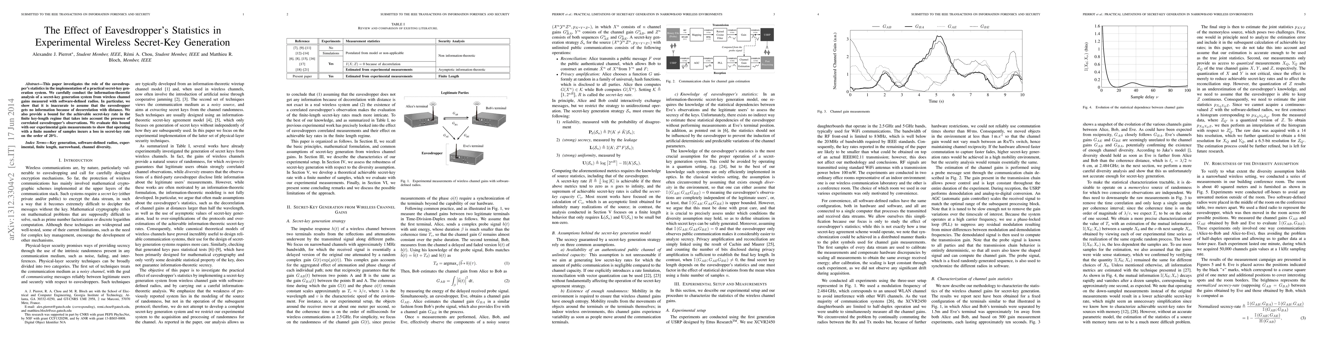 This paper investigates the role of the eavesdropper's statistics in the implementation of a practical secret-key generation system. We carefully conduct the information-theoretic analysis of a secret-key generation system from wireless channel gains measured with software-defined radios. In particular, we show that it is inaccurate to assume that the eavesdropper gets no information because of decorrelation with distance. We also provide a bound for the achievable secret-key rate in the finite key-length regime that takes into account the presence of correlated eavesdropper's observations. We evaluate this bound with our experimental gain measurements to show that operating with a finite number of samples incurs a loss in secret-key rate on the order of 20%.