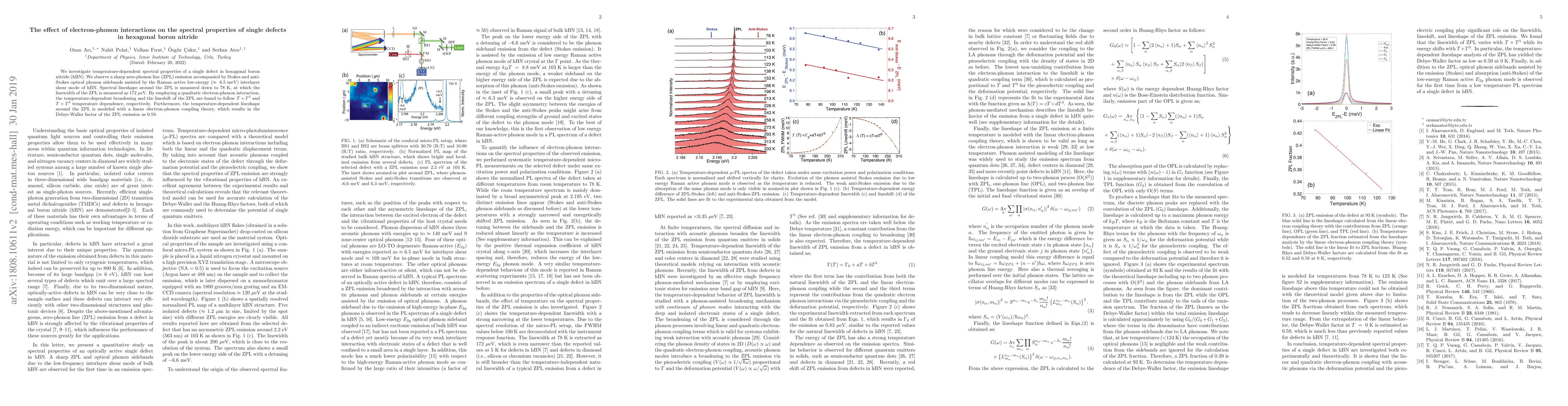 We investigate temperature-dependent spectral properties of a single defect in hexagonal boron nitride (hBN). We observe a sharp zero-phonon line (ZPL) emission accompanied by Stokes and anti-Stokes optical phonon sidebands assisted by the Raman active low-energy ($\approx~6.5$ meV) interlayer shear mode of hBN. Spectral lineshape around the ZPL is measured down to 78 K, at which the linewidth of the ZPL is measured as 172 $\mu$eV. By employing a quadratic electron-phonon interaction, the temperature-dependent broadening and the lineshift of the ZPL are found to follow $T+T^5$ and $T+T^3$ temperature dependence, respectively. Furthermore, the temperature-dependent lineshape around the ZPL is modeled with a linear electron-phonon coupling theory, which results in the Debye-Waller factor of the ZPL emission as 0.59.