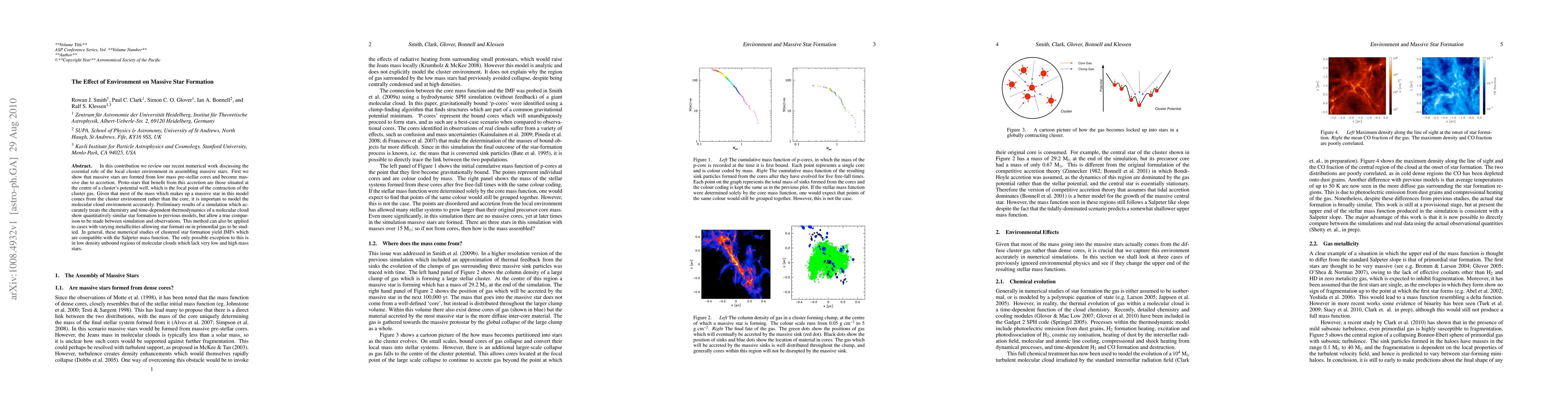 In this contribution we review our recent numerical work discussing the essential role of the local cluster environment in assembling massive stars. First we show that massive stars are formed from low mass pre-stellar cores and become massive due to accretion. Proto-stars that benefit from this accretion are those situated at the centre of a cluster's potential well, which is the focal point of the contraction of the cluster gas. Given that most of the mass which makes up a massive star in this model comes from the cluster environment rather than the core, it is important to model the molecular cloud environment accurately. Preliminary results of a simulation which accurately treats the chemistry and time-dependent thermodynamics of a molecular cloud show quantitatively similar star formation to previous models, but allow a true comparison to be made between simulation and observations. This method can also be applied to cases with varying metallicities allowing star formation in primordial gas to be studied. In general, these numerical studies of clustered star formation yield IMFs which are compatible with the Salpeter mass function. The only possible exception to this is in low density unbound regions of molecular clouds which lack very low and high mass stars.