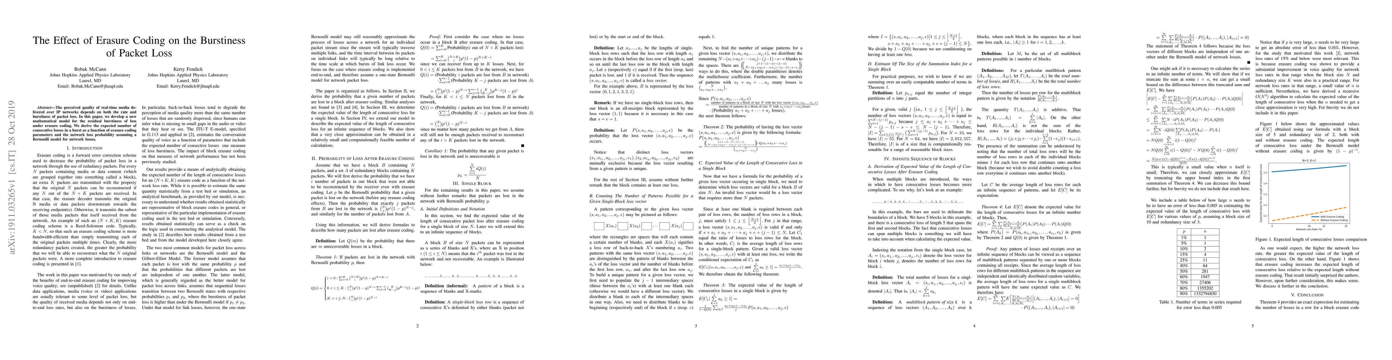 This paper develops a mathematical model to analyze how erasure coding affects the burstiness of packet loss in real-time media over IP networks, deriving the expected number of consecutive losses based on the coding parameters and network loss probability.