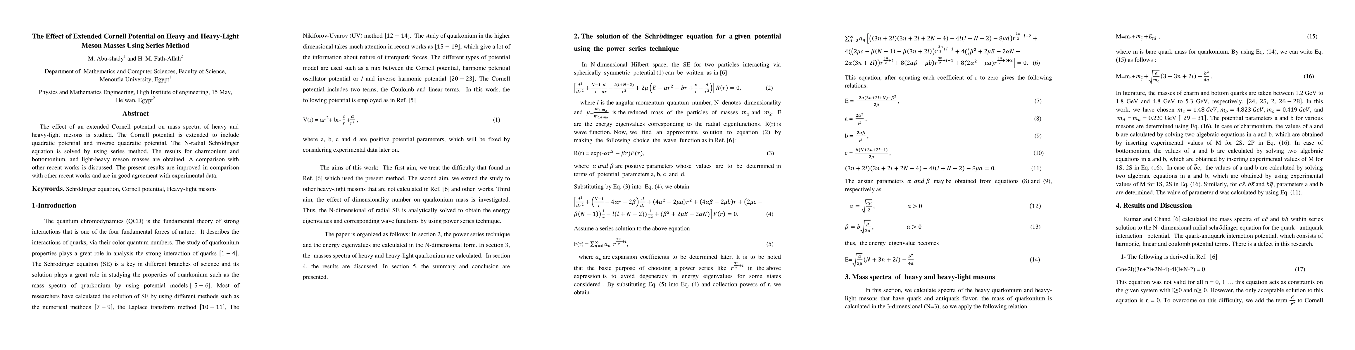 This study investigates the impact of an extended Cornell potential, incorporating quadratic and inverse quadratic terms, on the mass spectra of heavy and heavy-light mesons using the series method to solve the N-radial Schrödinger equation. The results show improved accuracy compared to other recent works and align well with experimental data.