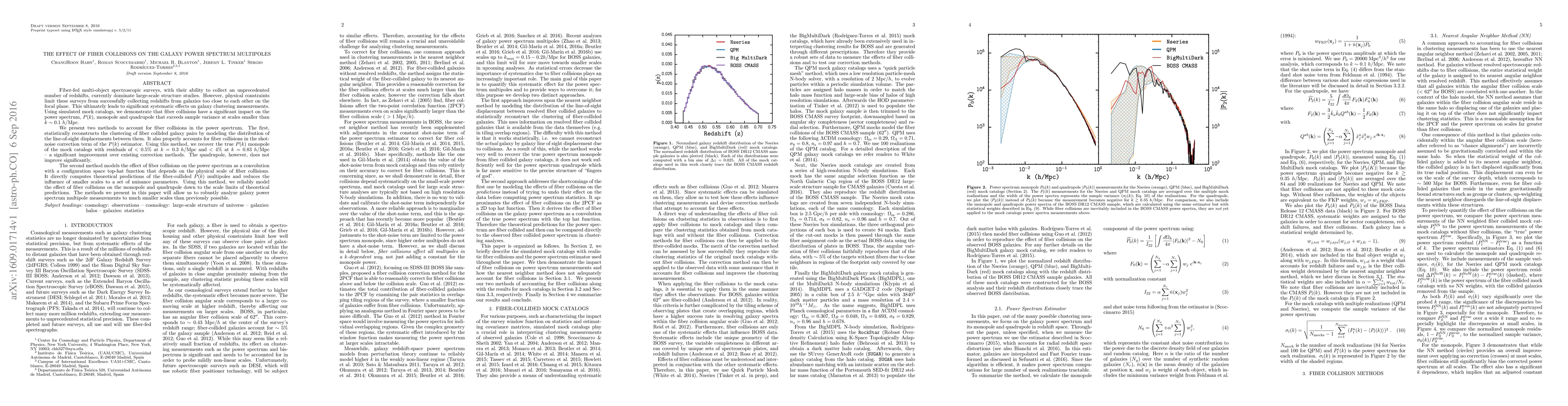 This paper investigates the impact of fiber collisions on galaxy power spectrum measurements in fiber-fed spectroscopic surveys, demonstrating significant effects on the monopole and quadrupole at small scales. It proposes two correction methods: one statistically reconstructs fiber collided galaxy pairs, achieving <0.5% residuals on the monopole at $k=0.3~h/Mpc$, and the other models collisions as a convolution, reliably predicting the effect on the monopole and quadrupole.