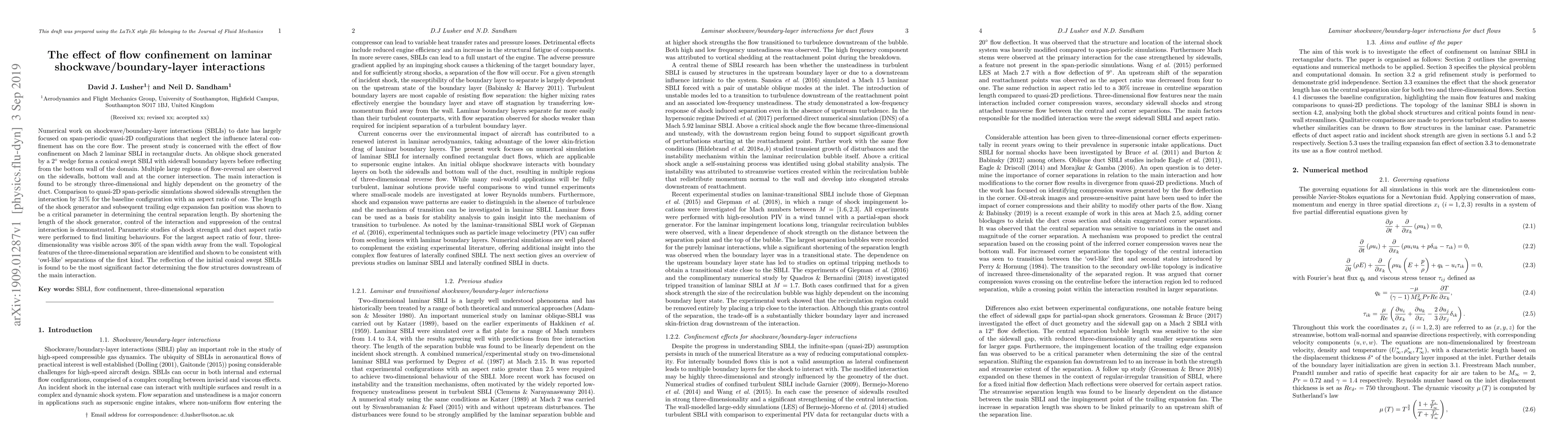 This study numerically investigates how the shape of a duct affects Mach 2 laminar shockwave/boundary-layer interactions, finding that confined flows significantly intensify these interactions, especially on sidewalls. By adjusting the shock generator length, researchers demonstrate the potential to control and weaken these interactions. The results indicate that duct geometry, particularly aspect ratio, plays a crucial role in determining the strength and three-dimensional characteristics of the resulting flow structures.