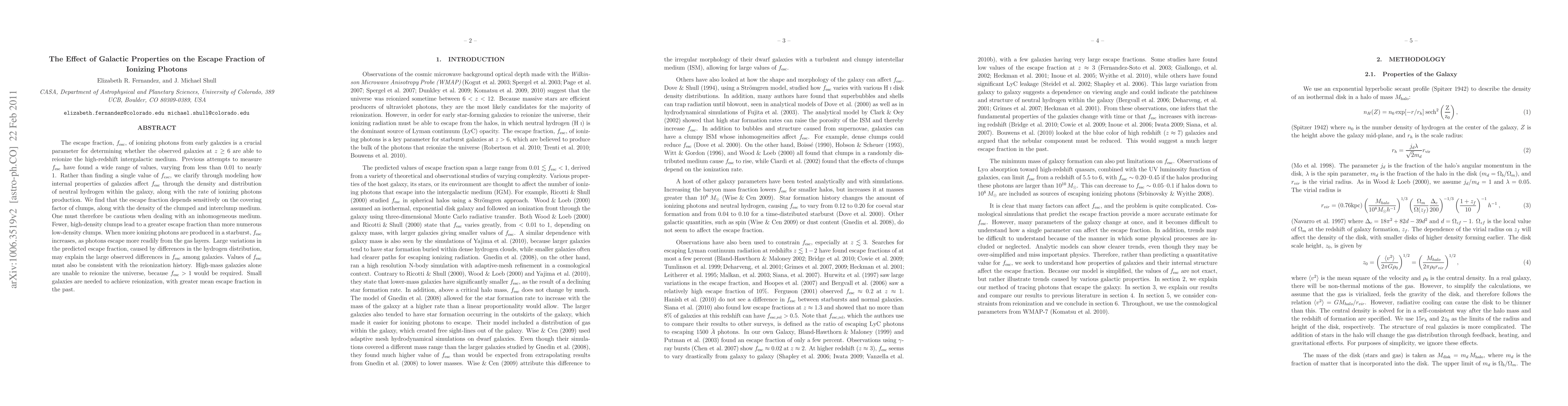 This paper investigates how galactic properties influence the escape fraction of ionizing photons, finding that variations in the density and distribution of neutral hydrogen, along with the rate of photon production, significantly affect fesc. It concludes that fewer, denser clumps enhance photon escape, and that small galaxies with higher mean escape fractions are essential for reionization.