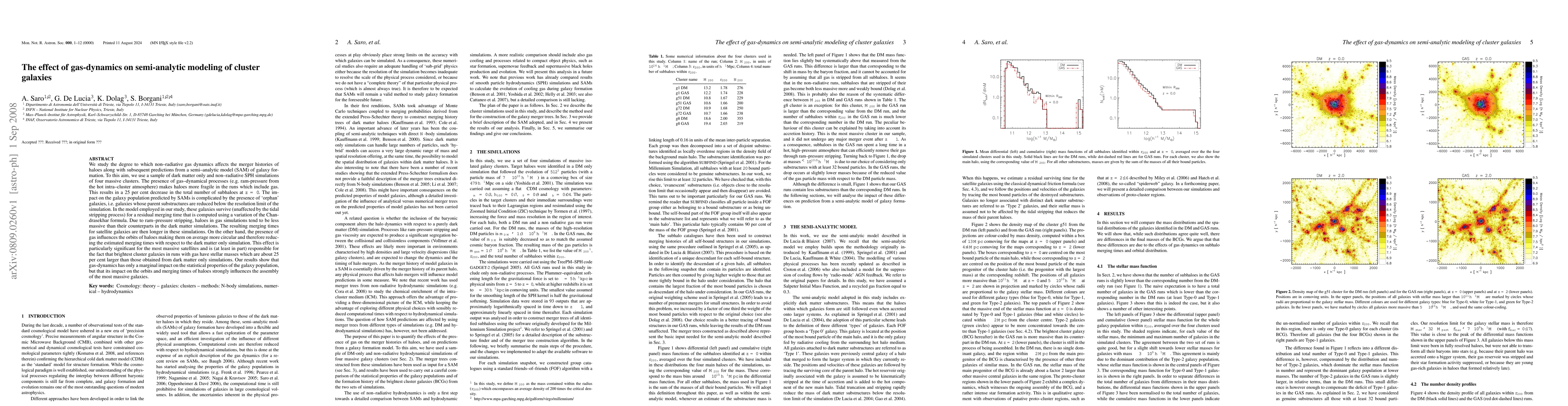 We study the degree to which non-radiative gas dynamics affects the merger histories of haloes along with subsequent predictions from a semi-analytic model (SAM) of galaxy formation. To this aim, we use a sample of dark matter only and non-radiative SPH simulations of four massive clusters. The presence of gas-dynamical processes (e.g. ram-pressure from the hot ICM) makes haloes more fragile in the runs which include gas. This results in a 25 per cent decrease in the total number of subhaloes at z = 0. The impact on the galaxy population predicted by SAMs is complicated by the presence of "orphan" galaxies, i.e. galaxies whose parent substructures are reduced below the resolution limit of the simulation. In the model employed in our study, these galaxies survive for a residual merging time that is computed using a variation of the Chandrasekhar formula. Due to ram-pressure stripping, haloes in gas simulations tend to be less massive than their counterparts in the dark matter simulations. The resulting merging times for satellite galaxies are then longer in these simulations. On the other hand, the presence of gas influences the orbits of haloes making them on average more circular and therefore reducing the estimated merging times with respect to the dark matter only simulation. This effect is particularly significant for the most massive satellites and is (at least in part) responsible for the fact that brightest cluster galaxies in runs with gas have stellar masses which are about 25 per cent larger than those obtained from dark matter only simulations. Our results show that gas-dynamics has only a marginal impact on the statistical properties of the galaxy population, but that its impact on the orbits and merging times of haloes strongly influences the assembly of the most massive galaxies.
