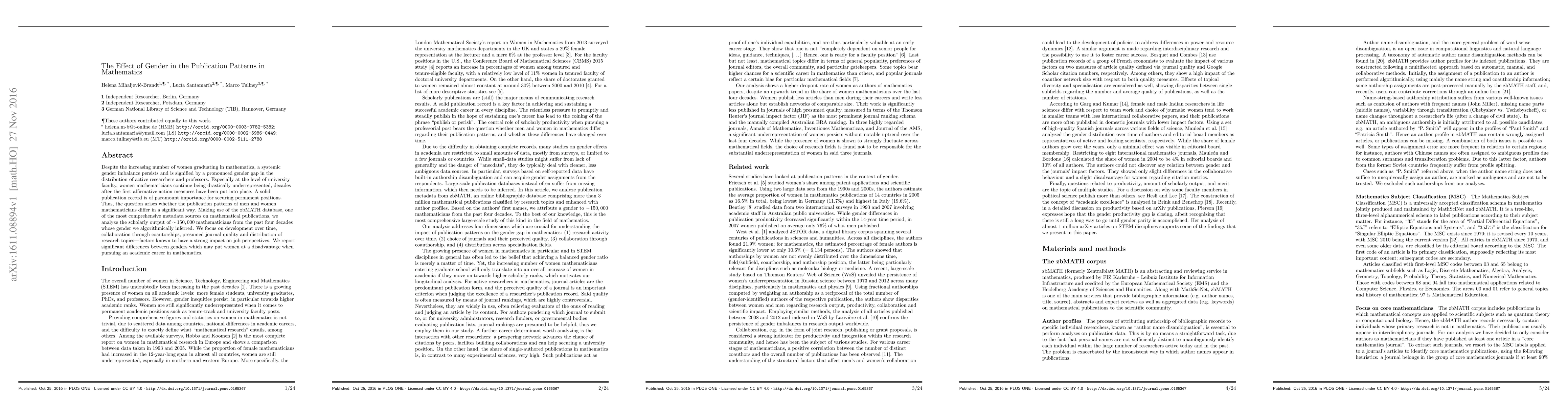 This study analyzes the publication patterns of ~150,000 mathematicians over four decades, revealing significant gender disparities in scholarly output, collaboration, journal quality, and research topics, which may disadvantage women in securing academic positions in mathematics.