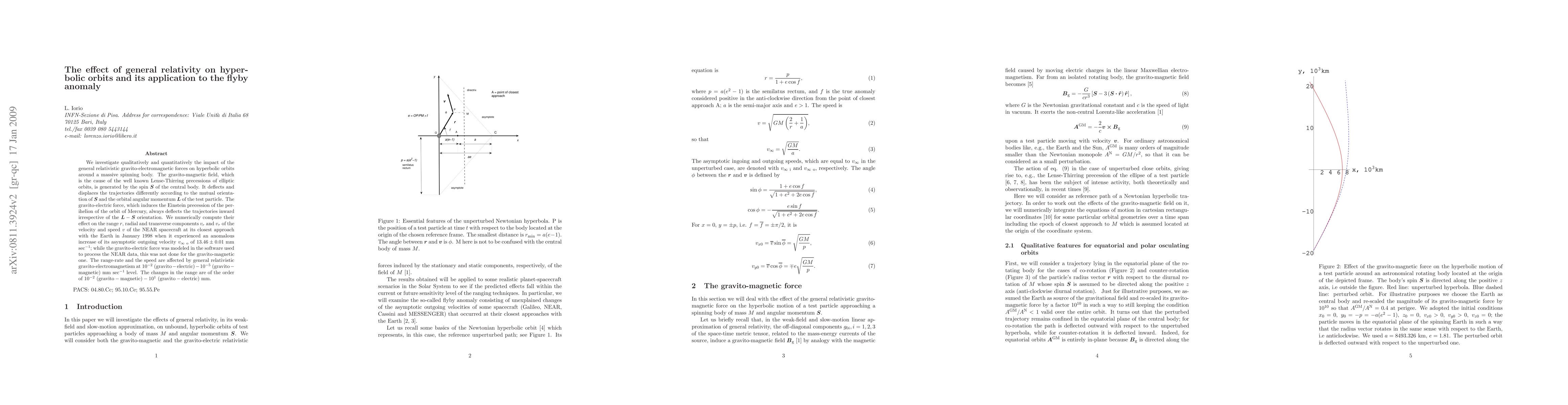 We investigate qualitatively and quantitatively the impact of the general relativistic gravito-electromagnetic forces on hyperbolic orbits around a massive spinning body. The gravito-magnetic field, which is the cause of the well known Lense-Thirring precessions of elliptic orbits, is generated by the spin S of the central body. It deflects and displaces the trajectories differently according to the mutual orientation of S and the orbital angular momentum L of the test particle. The gravito-electric force, which induces the Einstein precession of the perihelion of the orbit of Mercury, always deflects the trajectories inward irrespective of the L-S orientation. We numerically compute their effect on the range r, radial and transverse components v_r and v_\tau of the velocity and speed v of the NEAR spacecraft at its closest approach with the Earth in January 1998 when it experienced an anomalous increase of its asymptotic outgoing velocity v_\infty o of 13.46 +/- 0.01 mm sec^-1; while the gravito-electric force was modeled in the software used to process the NEAR data, this was not done for the gravito-magnetic one. The range-rate and the speed are affected by general relativistic gravito-electromagnetism at 10^-2 (gravito-electric)-10^-5 (gravito-magnetic) mm sec^-1 level. The changes in the range are of the order of 10^-2 (gravito-magnetic)-10^1 (gravito-electric) mm.