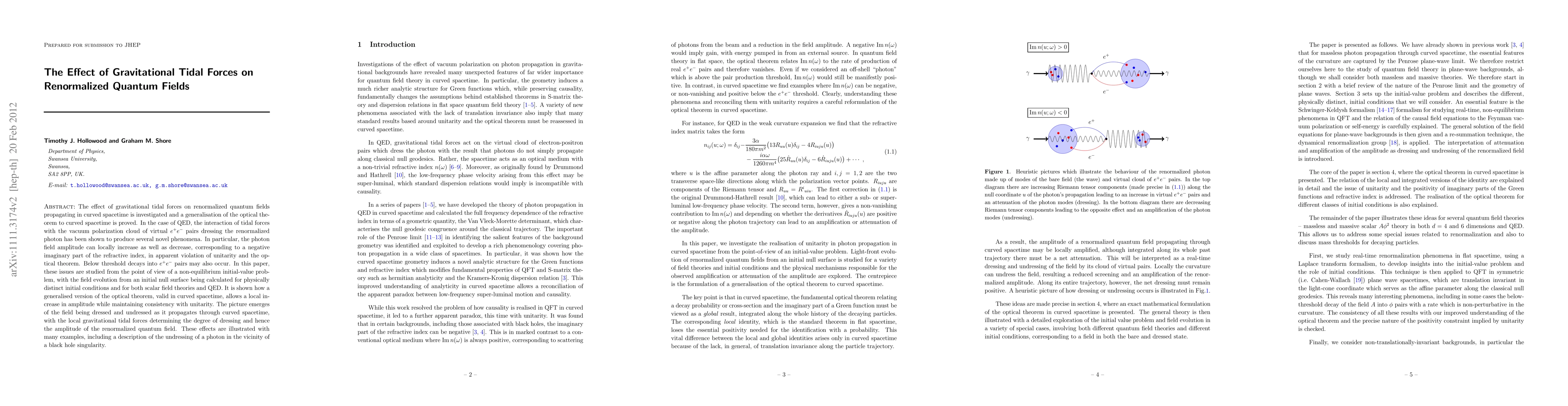 The effect of gravitational tidal forces on renormalized quantum fields propagating in curved spacetime is investigated and a generalisation of the optical theorem to curved spacetime is proved. In the case of QED, the interaction of tidal forces with the vacuum polarization cloud of virtual e^+ e^- pairs dressing the renormalized photon has been shown to produce several novel phenomena. In particular, the photon field amplitude can locally increase as well as decrease, corresponding to a negative imaginary part of the refractive index, in apparent violation of unitarity and the optical theorem. Below threshold decays into e^+ e^- pairs may also occur. In this paper, these issues are studied from the point of view of a non-equilibrium initial-value problem, with the field evolution from an initial null surface being calculated for physically distinct initial conditions and for both scalar field theories and QED. It is shown how a generalised version of the optical theorem, valid in curved spacetime, allows a local increase in amplitude while maintaining consistency with unitarity. The picture emerges of the field being dressed and undressed as it propagates through curved spacetime, with the local gravitational tidal forces determining the degree of dressing and hence the amplitude of the renormalized quantum field. These effects are illustrated with many examples, including a description of the undressing of a photon in the vicinity of a black hole singularity.